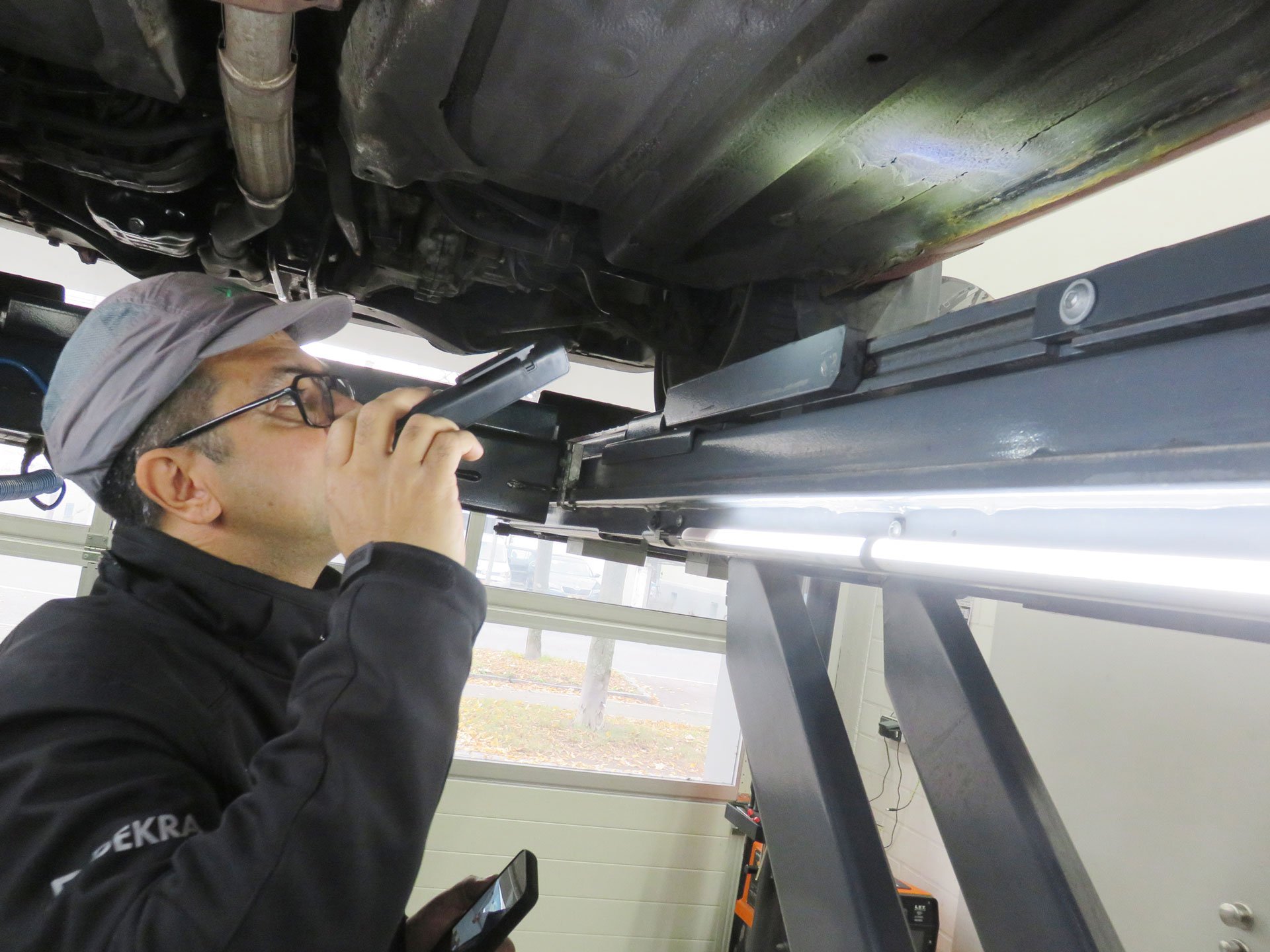 Natürlich kennt Markus Becker dieses Verhalten gut: „Die anwesenden Auftraggeber weichen mir oft nicht von der Seite und möchten jedes Detail mitverfolgen.“ Der erfahrene Dekra-Oldtimer-Sachverständige scannt anfangs die Unterlagen ein: Restaurierungsnachweise, Angaben zur Historie und entsprechende Kfz-Dokumente. Schließlich beginnt eine erste Sichtprüfung, wobei grundsätzlich verlangt wird, das Fahrzeug nicht nur fahrbereit, sondern auch leer vorzuführen. Lächelnd erzählt Becker, es gebe durchaus Kunden, die mit rappelvollem Kofferraum kämen. Der solle jedoch geräumt werden, da er ja den gesamten Fahrzeugkörper einsehen müsse.