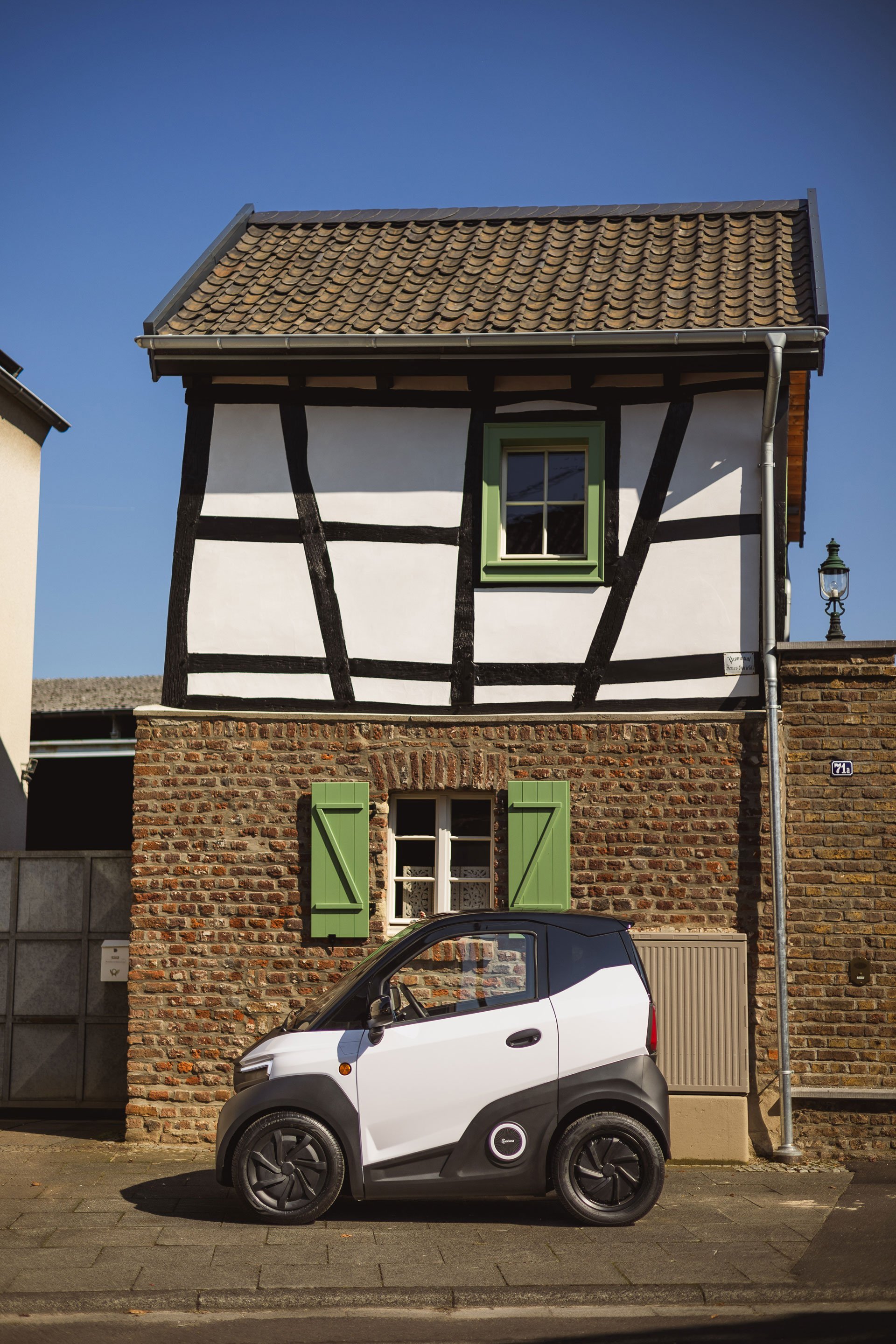 Gewöhnungsbedürftig ist ebenso die – gelinde gesagt – straffe Federung. Die muss man mögen und sich darauf einstellen. Ansonsten gelingt die Freundschaft mit dem Wägelchen überraschend schnell. Natürlich bereitet es Frohsinn, wenn man sich wieselähnlich mit einer Reichweite von rund 150 Kilometer durch den Verkehr schlängelt, was auch auf Landstraßen völlig gelassen gelingt. Ein Riesen-Pluspunkt zeigt sich zudem bei der Suche nach Parklücken. Bei diesen Außenabmessungen schauen andere Verkehrsteilnehmer nur neidisch zu: Wir konnten eine kleine Bucht direkt quer parkend nutzen.