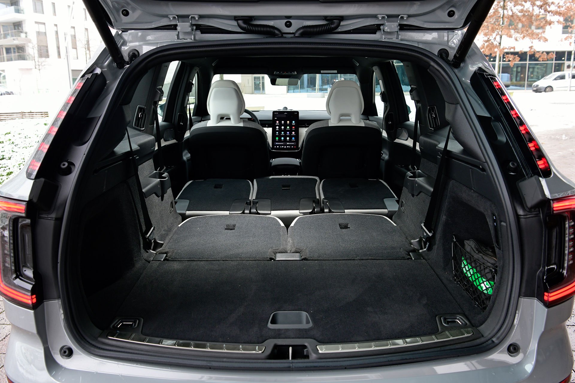 Entsprechende Einstellungen im Cockpit sollte man tunlichst vorher erledigen – oder unterwegs per Sprachsteuerung. Denn die meisten Funktionen bis hin zur Spiegel- und Lenkrad-Einstellung sind über den großen berührungsempfindlichen Bildschirm zu dirigieren; keine Ahnung, wem das so umfassend in der Praxis wirklich Vergnügen bereitet. Letzteres haben übrigens wohl am ehesten Kinder, wenn sie auf die beiden – voll versenkbaren – Plätze in Reihe drei durchklettern.