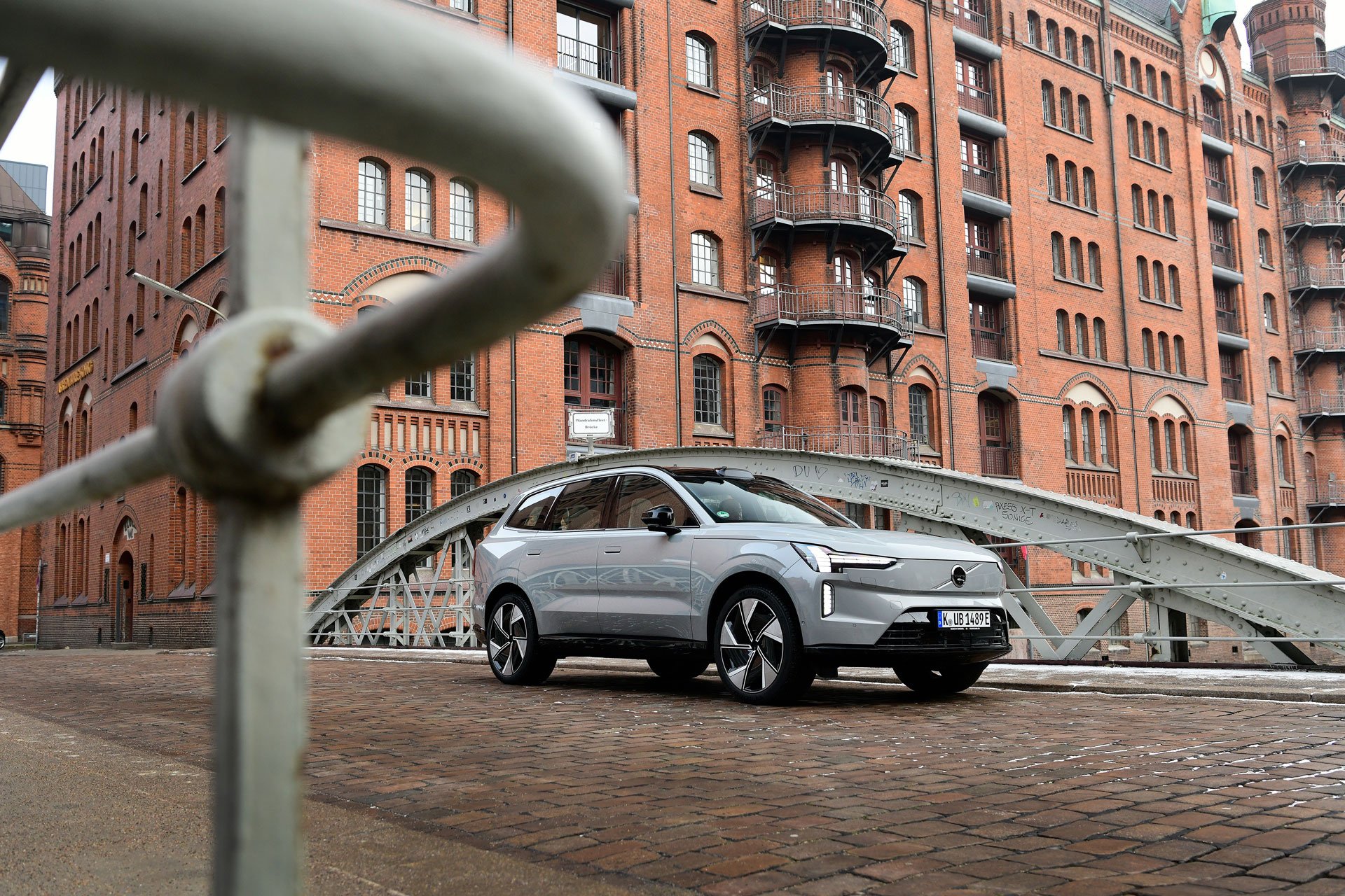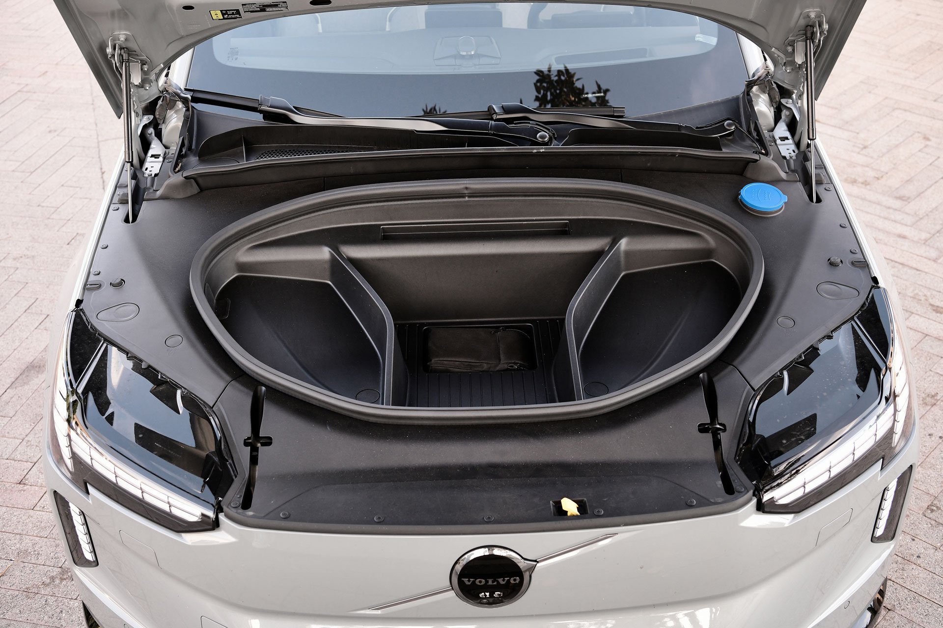 Mit der weitgehend glattgebügelten SUV-Karosserie steht Volvo nicht allein da, weshalb es immer schwieriger wird, die zahlreichen E-Mobile voneinander zu unterscheiden. Auf den ersten Blick sind es vorn das Markenzeichen und die so genannten Thors-Hammer-Tagfahrleuchten, die eine Volvo-Zuordnung ermöglichen.