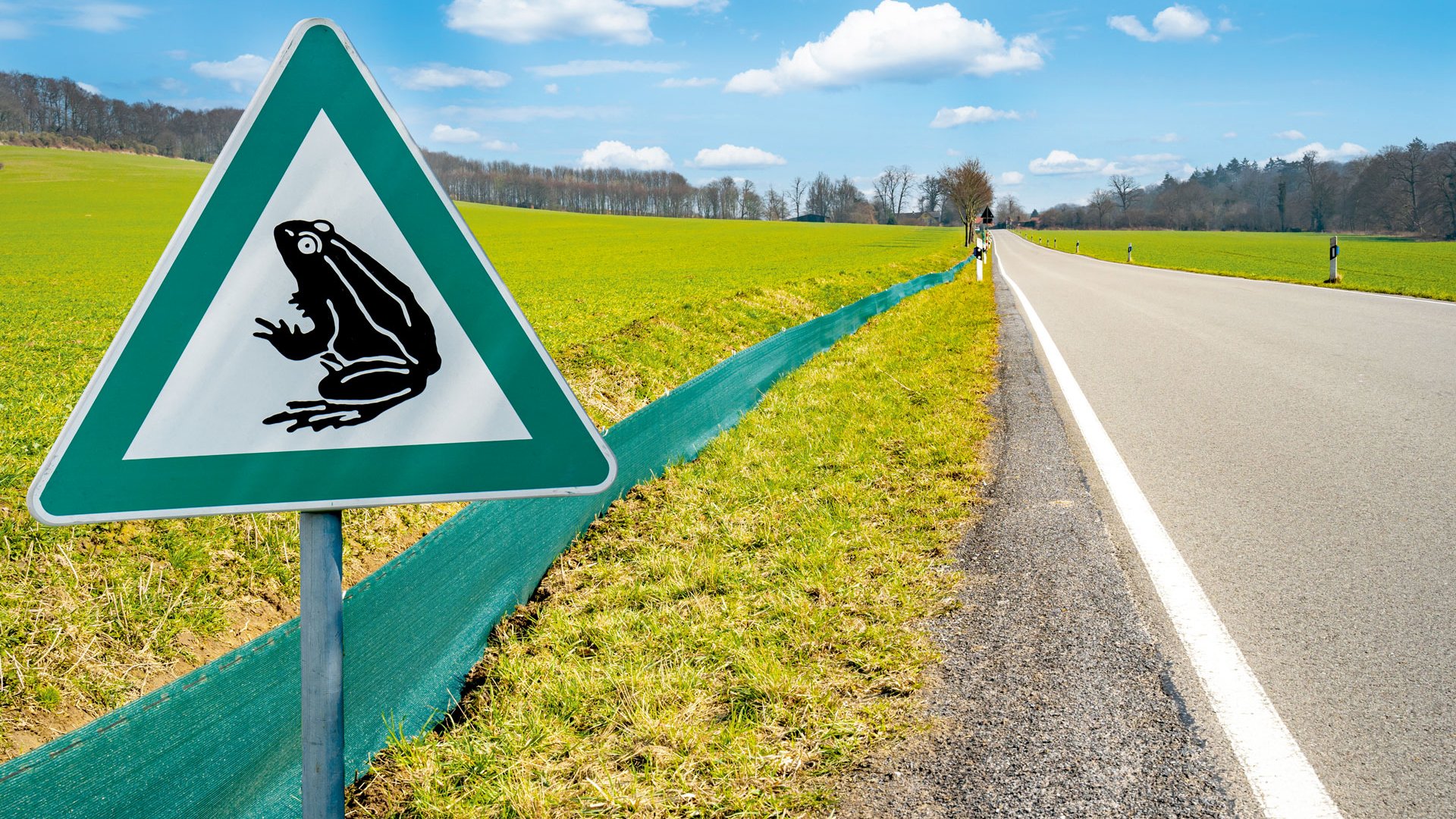Vorwiegend an Gemeinde- und Landstraßen warnen im Frühjahr Gefahrzeichen und Geschwindigkeitsbeschränkungen vor dem Kröten-Treck – besonders in Gewässernähe. Kleine grüne Zäune am Straßenrand sollen Kröten & Co daran hindern, das Asphaltband zu überqueren.
