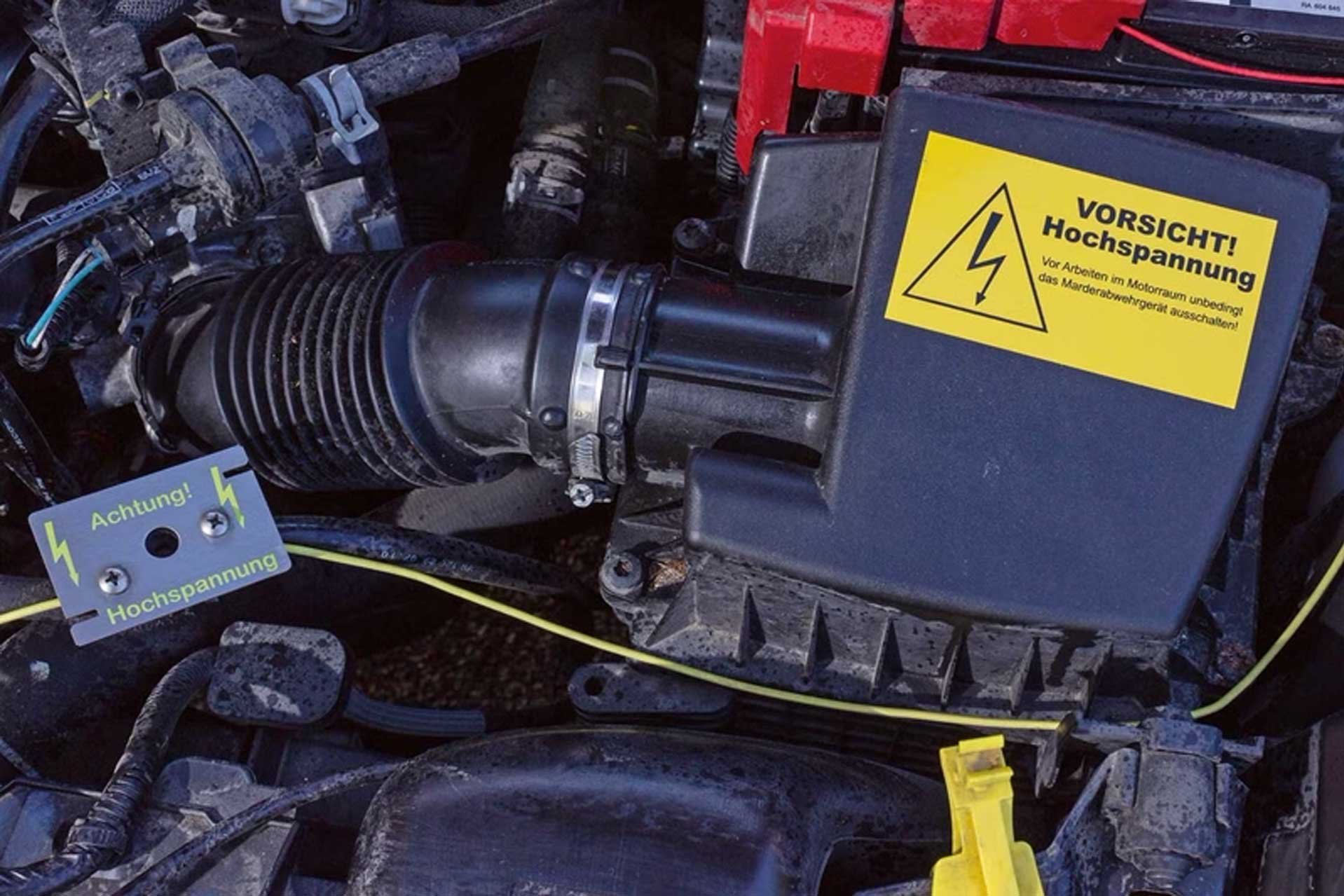 - Hochspannungs-Abwehrgeräte: Sie geben einen kurzen, aber gefahrlosen Stromschlag ab, wenn der Marder den Motorraum im Auto betritt.
