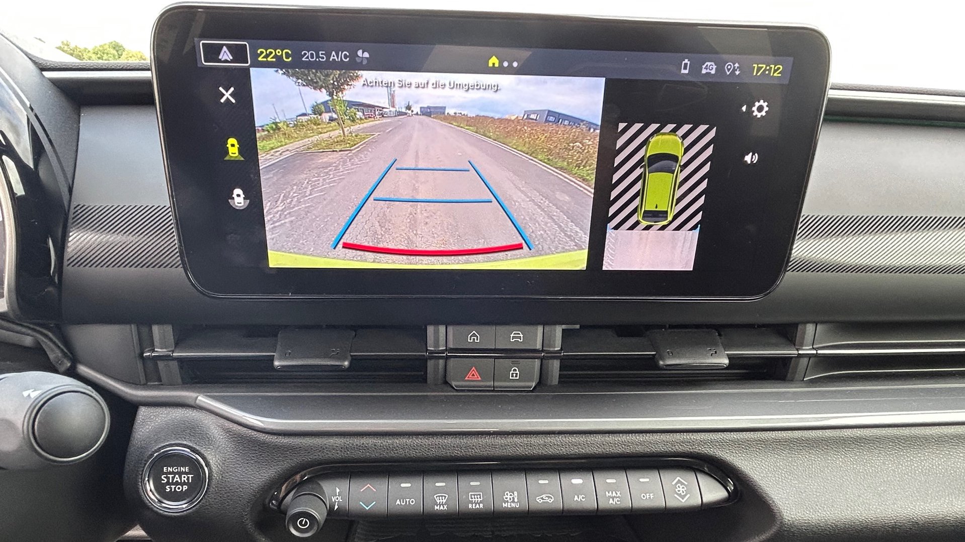 Die Rückfahrkamera liefert ein breites Bild im Display, schaltet bei langsamer Rückwärtsfahrt jedoch nicht immer automatisch zu. Stattdessen bleibt oft das Radiomenü sichtbar – genau dann, wenn man die Kamera am dringendsten braucht, etwa beim Einparken. Man muss entweder warten, bis sie zuschaltet, oder sie manuell aktivieren. Das kann beim Rangieren lästig sein.