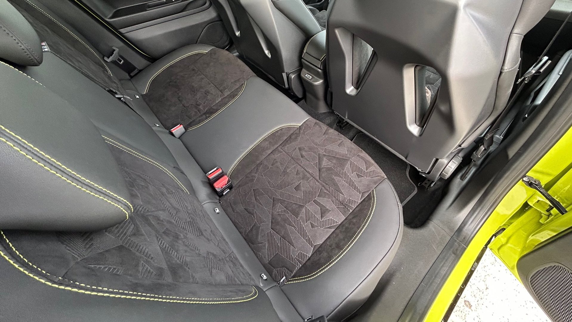 Die Sportsitze sind serienmäßig mit Alcantara bezogen und bieten dank ausgeprägter Seitenwangen sicheren Halt auch in schnellen Kurven. Mit Sommerkleidung sitzt es sich bequem, mit dicker Winterjacke könnte es jedoch eng werden. Vorn ist die Kopffreiheit großzügig, die Beinfreiheit reicht für große Fahrer gerade noch so aus.