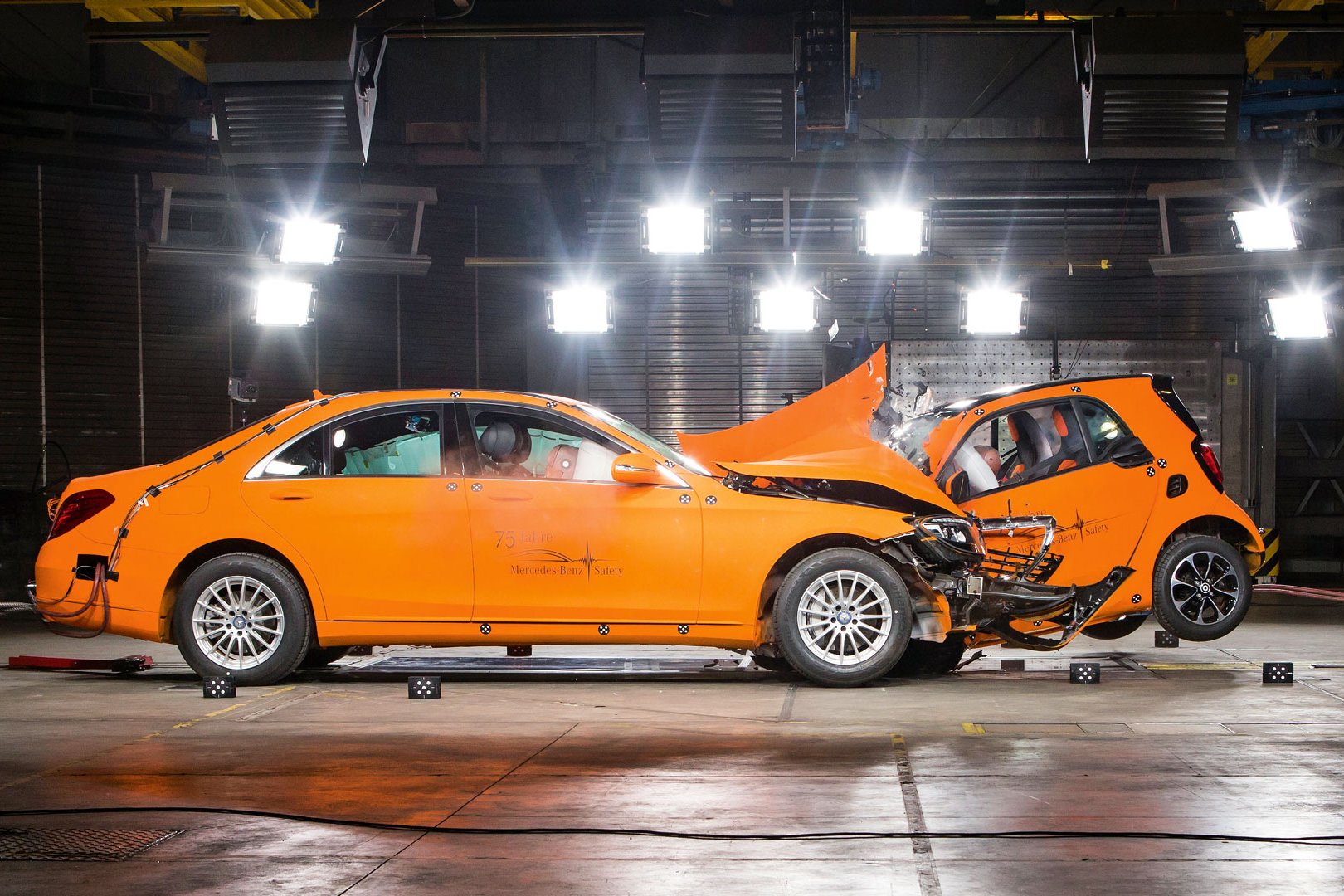 So zeigte Audi mit dem A2 schon vor 20 Jahren, wie effizient und komfortabel zugleich ein Kompaktwagen sein kann. Mit dem A2 3L mit Dreizylinder-Diesel-Direkteinspritzer und Leichtbauweise schufen die Ingenieure ein Drei-Liter-Auto, das nur 855 Kilo wog – trotz serienmäßiger Sicherheitsausstattung wie Airbags oder ESP. Das Crashverhalten des A2 war gut. Sogar ein Smart fortwo schnitt gut ab, als Mercedes ihn 2014 bei einem hausinternen Crashtest mit 50 km/h gegen eine S-Klasse prallen ließ.