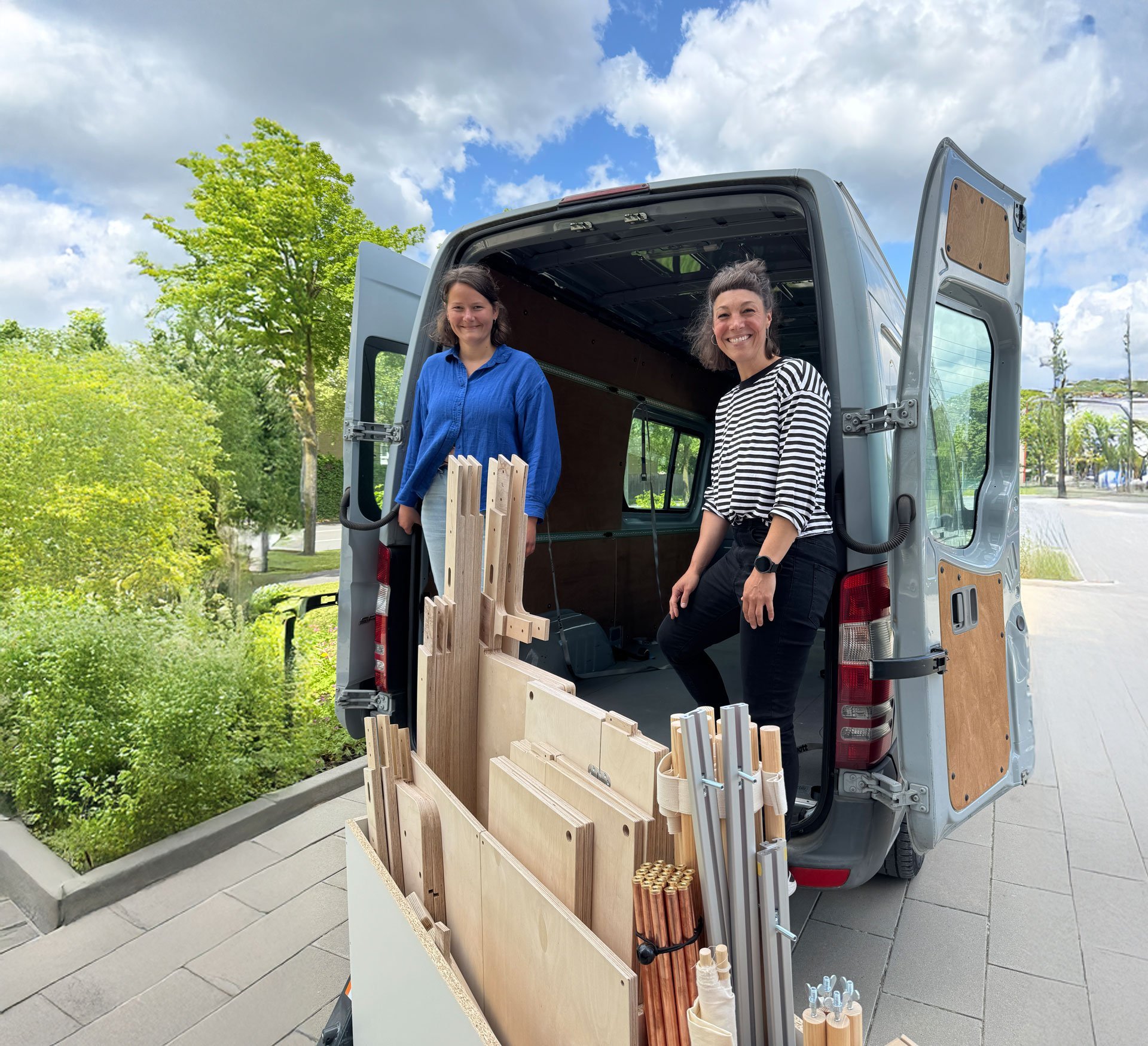 Nicht nur bei den unbehandelten Materialien, auch bei der Produktion setzen die beiden Start-up-Unternehmerinnen auf Nachhaltigkeit. Alle Teile werden in der Region gefertigt. „Wir haben Produzenten gesucht, mit denen es Spaß macht“, erzählt Frauke. Sehr gekämpft hätten sie darum, in Deutschland produzieren lassen zu können. Bestellen können Kunden individuell: Das Komplettpaket mit Polstern und Küchenbox von Boxio kostet 12.400 Euro, die Basisvariante ist ab 9.990 Euro erhältlich. Wer aber erst mal mit dem Bettmodul beginnen möchte, kann nur einzelne Bestandteile des Interieurs kaufen. „Die meisten Camper haben auch schon viel Klüngel zu Hause“, sagt Frauke. Der Walbauch ist in der Länge flexibel anpassbar und funktioniert bei kürzerem Radstand auch mit weniger Rippen. Lediglich die Innenhöhe von 1,91 Metern sollte beim Fahrzeug gegeben sein. Das Baukasten-Prinzip bietet viele Optionen – der Fantasie sind keine Grenzen gesetzt. „Da kann jeder nach seinen Vorstellungen noch selbst basteln“, meint Frauke. Die Unternehmerinnen wollen ihr Produkt nun auf Messen präsentieren. Die bisherigen Rückmeldungen sind positiv. Denn wenn man das Konzept gesehen oder ausprobiert hat, kann man sich Campen darin viel besser vorstellen.