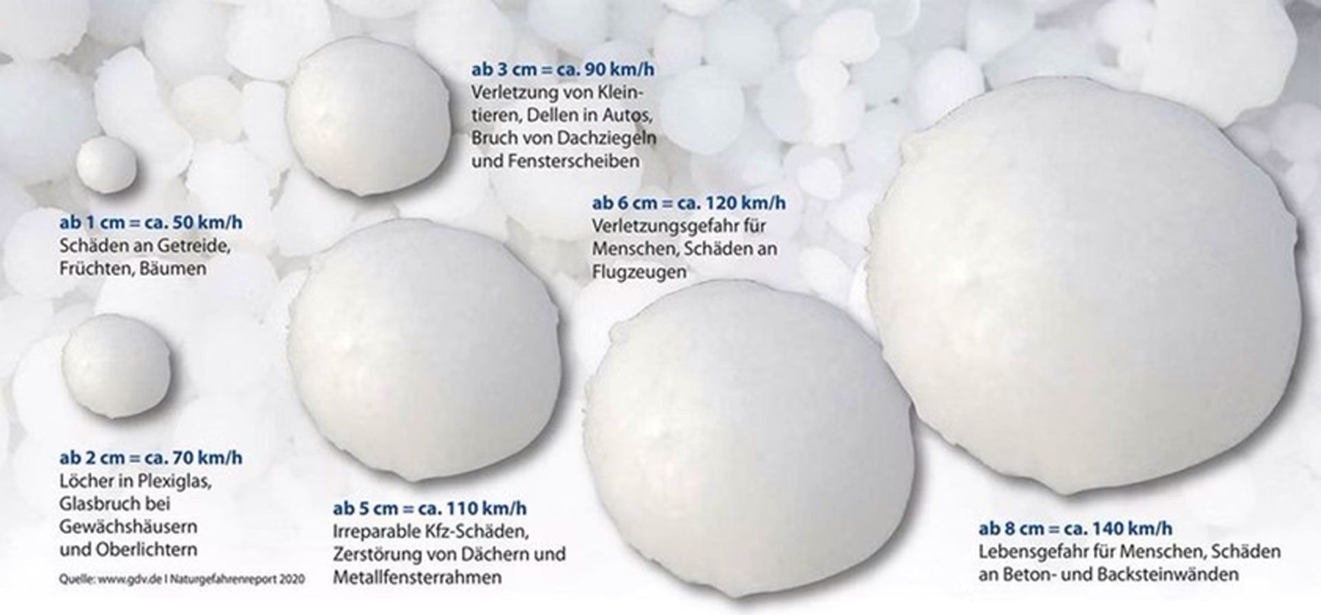- Den Schaden umgehend telefonisch, per Fax, E-Mail oder Brief der Versicherung melden mit Tag, Uhrzeit und Ort des Hagelschlags.
