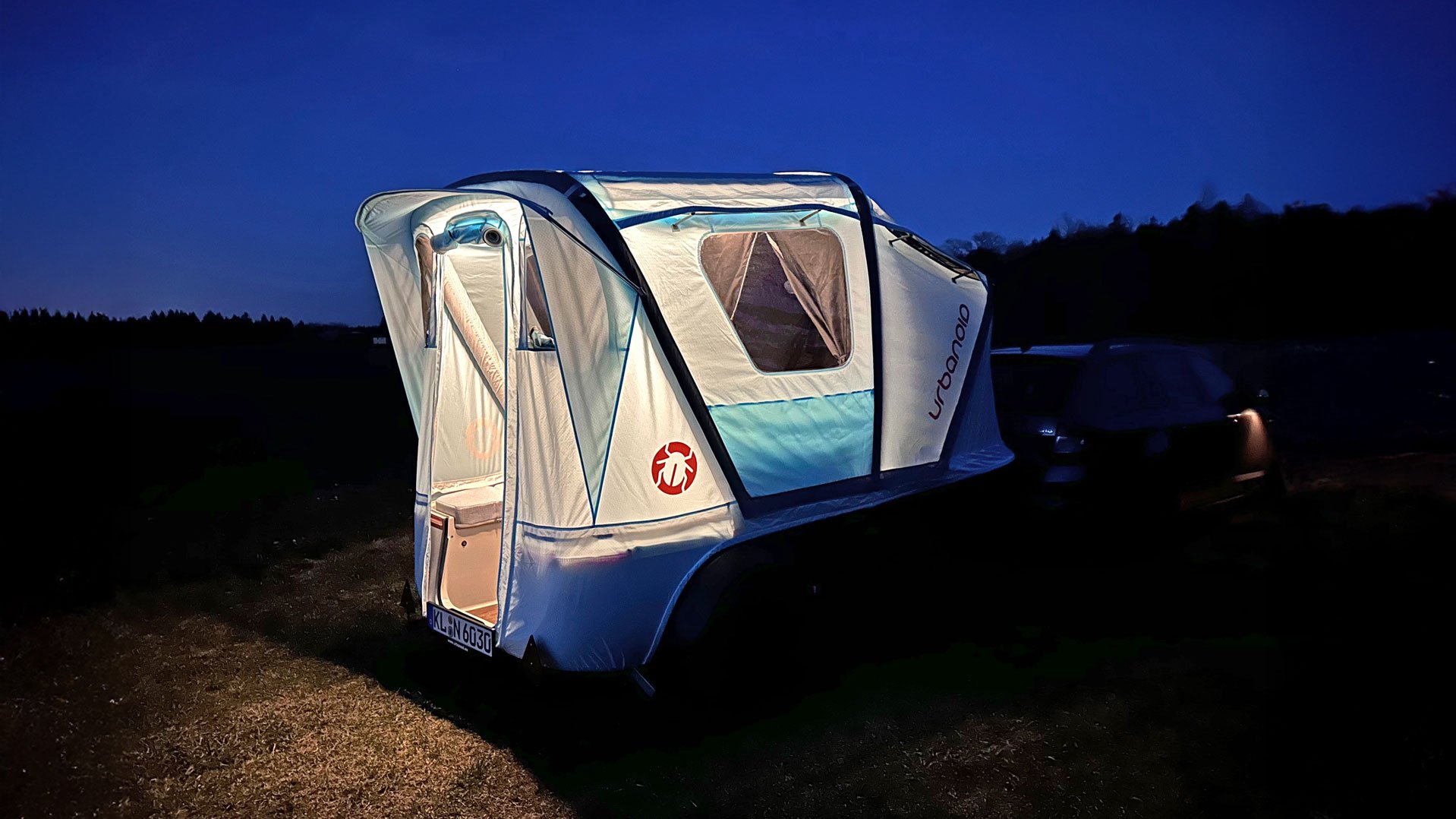 Auch Besitzer von E-Autos oder kleinen Pkw wollen campen, müssen aber mit teils geringer Anhängelast auskommen. Das verlangt nach leichten Caravans wie etwa dem Booba (vom kroatischen „Buba“ für „Käfer“) von Urbanoid: Er wiegt gerade mal 240 Kilogramm, ist geschlossen nur 170 Zentimeter breit und (inklusive Deichsel) 270 Zentimeter lang. Aufgeklappt bietet er eine 240 x 130 Zentimeter große, gepolsterte Liegefläche für zwei Personen sowie einen Tisch, an dem man aufrecht sitzen kann. Drei Versionen des ungebremsten Anhängers sind lieferbar. Der Lite ist die Basisversion ohne unnötigen Schnickschnack. Der Mezzo bietet zusätzlich ein Netzteil, LED-Beleuchtung, USB-Anschlüsse und eine Lithiumbatterie. Der Pro ist das Luxusmodell mit Außendusche, 45-Liter-Wassertank, Membranpumpe und Alufelgen.