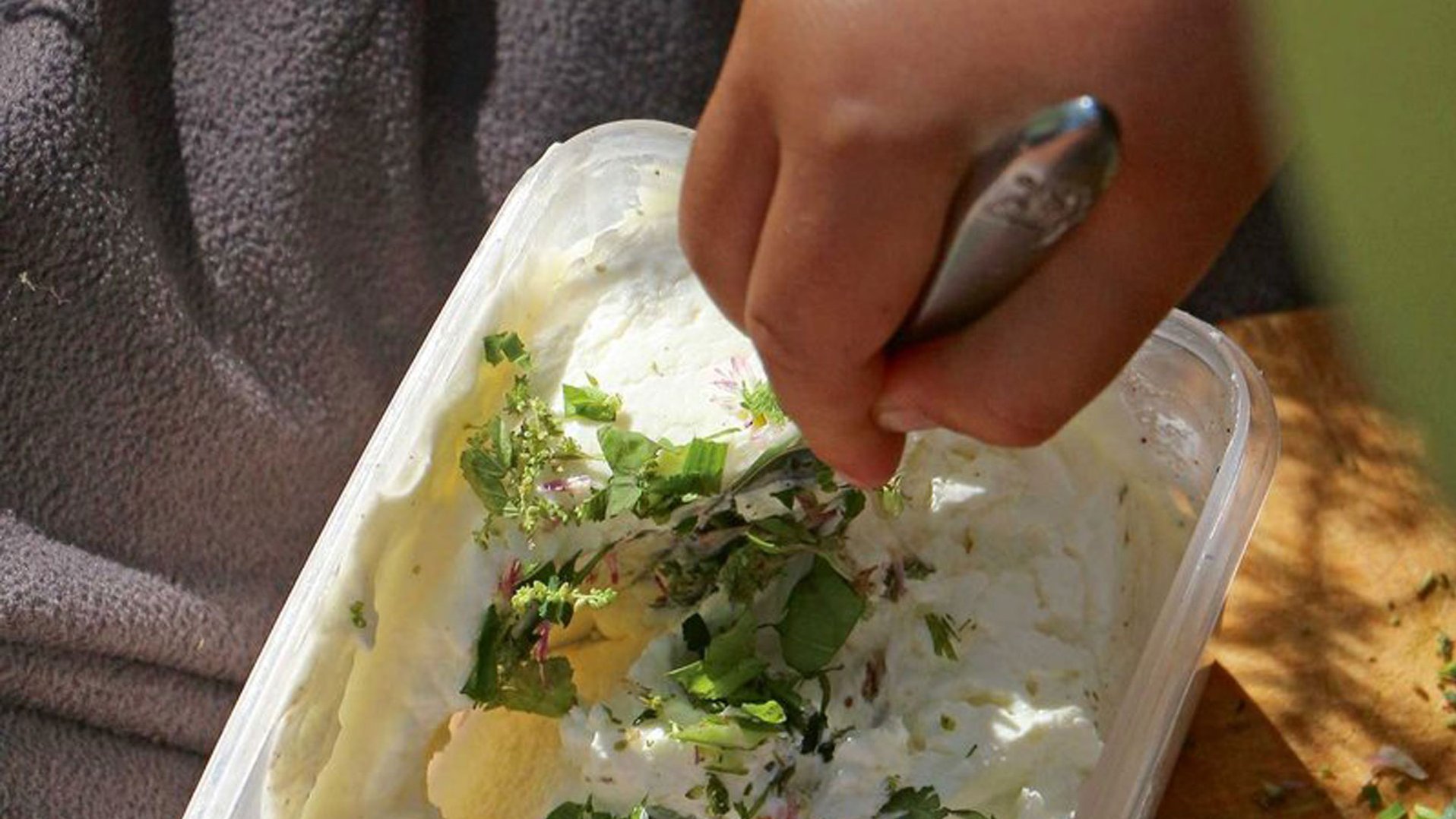 Noch erfrischender ist es im Hochsommer ein paar Kilometer weiter im Halltal, wo sich Einheimische und Urlauber zwischen den großen Steinen im klaren Wasser des Halltalbachs abkühlen. Mit Claudia Pyka begeben wir uns wieder einmal auf die Suche: diesmal nach aromatisch duftenden und heilenden Schätzen. Die ausgebildete Kräuterpädagogin zeigt uns in diesem Teil des Naturparks Karwendel Pflanzen wie den Breitwegerich. „Das ist ein Erste-Hilfe-Pflaster der Natur“, sagt sie und deutet auf die Blätter. Auf eine wunde Stelle gelegt verhindern diese laut der Expertin Reibung. Und sie kühlen eine Blase. Doch damit nicht genug. Die jungen, grünen Fruchtstände seien außerdem Power-Müsli-Riegel. Wir sammeln fleißig Kräuter, kosten neugierig und staunen immer wieder über die Wundermittel. Irgendwann breitet Claudia Pyka ihre Decke aus: „Jetzt können wir ein bisschen jausnen.“ Die Kinder schneiden die gesammelten Kräuter klein, mischen sie mit Pfeffer und Salz unter Quark, der hier Topfen genannt wird, und genießen die Fundstücke aus der Umgebung. Immer wieder flattern Schmetterlinge vorbei. „Dass es hier so viele gibt, ist ein gutes Zeichen. Die Natur ist hier noch in Ordnung“, stellt Claudia Pyka fest.