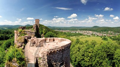 Oder man erkundet eine von rund 500 Burgen der Pfalz, meist Ruinen. Sie sind Ausflugsziel, Abenteuerspielplatz und Schatzkiste für historisch Interessierte zugleich. Eine der größten Anlagen befindet sich mit dem Burgenmassiv Altdahn östlich des Ortes Dahn. Durch ihn strömt die klare Wieslauter, die einige Kilometer weiter im Rhein mündet.