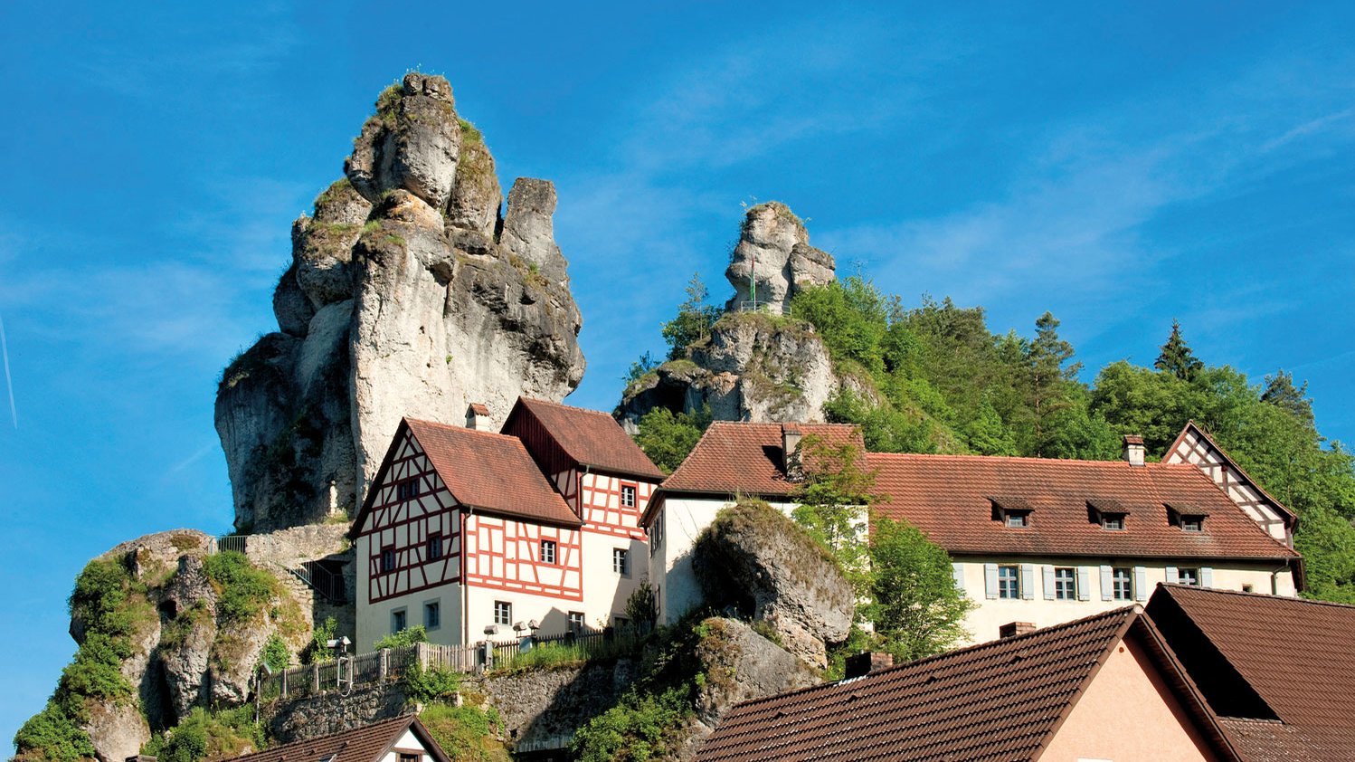 Auch Wanderer, Kletterer und Radfahrer genießen auf den mehr als 2300 Quadratkilometern zwischen Nürnberg, Bamberg und Bayreuth die Ruhe und Vielfalt der Natur, stoßen auf Burgen und Höhlen mit teils gewaltigen Tropfsteinen und fossilen Knochen. Mystisch mutet der Druidenhain bei Wohlmannsgesees an: Hier staunen Wanderer über riesige, moosbewachsene Felsbrocken im Wald. Bei so vielen Aktivitäten dürfen eine gute Unterkunft – meist Ferienwohnungen, Gasthöfe, Hotels und Campingplätze – und eine ordentliche Stärkung nicht zu kurz kommen.