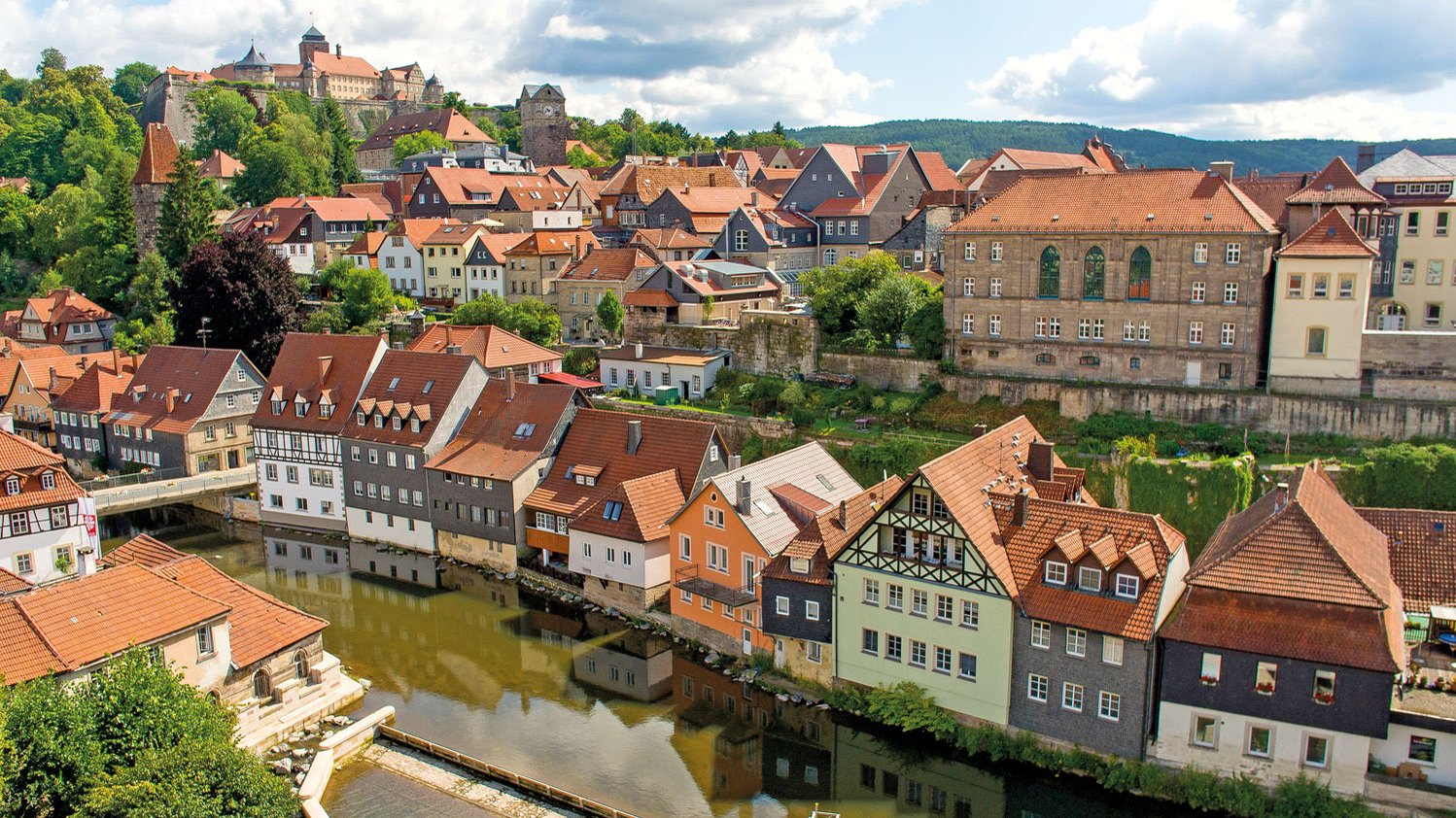Die Lucas-Cranach-Stadt in Oberfranken ist vermutlich auch eher eine Unbekannte in dieser Reihe. Doch Kronach hat viel zu bieten: Hoch über den Dächern der Altstadt wacht die Festung Rosenberg, eine der größten Festungsanlagen Deutschlands. Darunter liegt die „Obere Stadt“, wie die Einheimischen die auf einem Bergsporn gelegene historische Altstadt mit ihren kleinen Gässchen nennen. Wer in den unteren Teil der Stadt will, muss gut zu Fuß sein. Teils führen Treppen hinab zu den Häuserreihen an den Flüssen. Ein Besuch lohnt sich zu „Kronach leuchtet“, wenn die Stadt in viele Lichter getaucht wird.