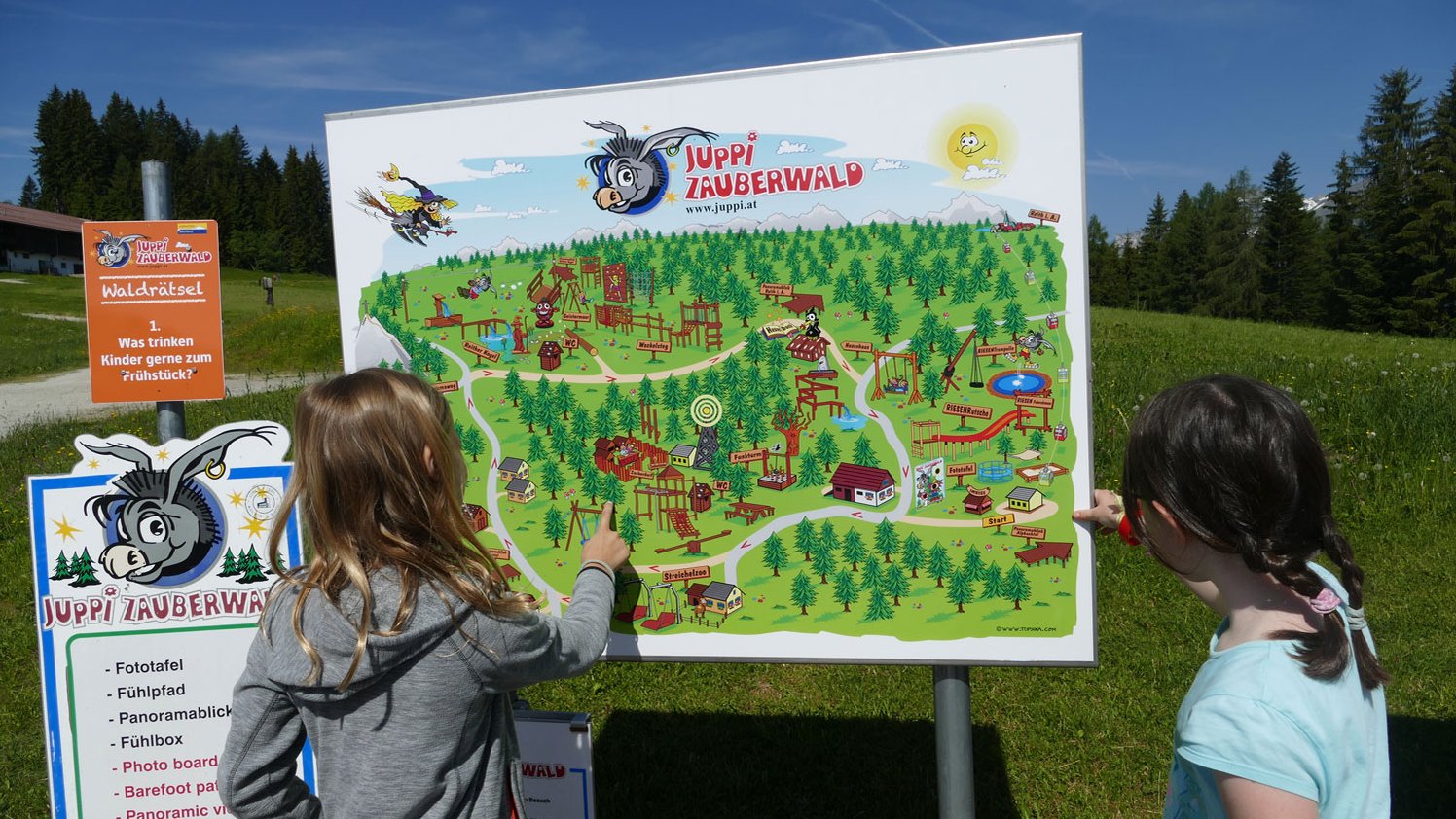 Und die beschränken sich nicht auf eine Betreuung in der Zentrale in Reith – im Gegenteil. Die Verantwortlichen im Alpbachtal, einem zertifizierten „Tiroler Familiennest”, legen Wert darauf, Kinder nicht nur zu bespaßen, sondern ihnen auch die Natur des Tales inmitten der Kitzbüheler Alpen und des Rofangebirges nahezubringen. Darum findet auch ein Großteil des Programms draußen statt: am Reintalersee, am Wiedersbergerhorn oder auch am Reitherkogel, wo wir am nächsten Tag den Juppi Zauberwald, einen zwei Kilometer langen Rundwanderweg mit Erlebnisstationen, erkunden wollen.