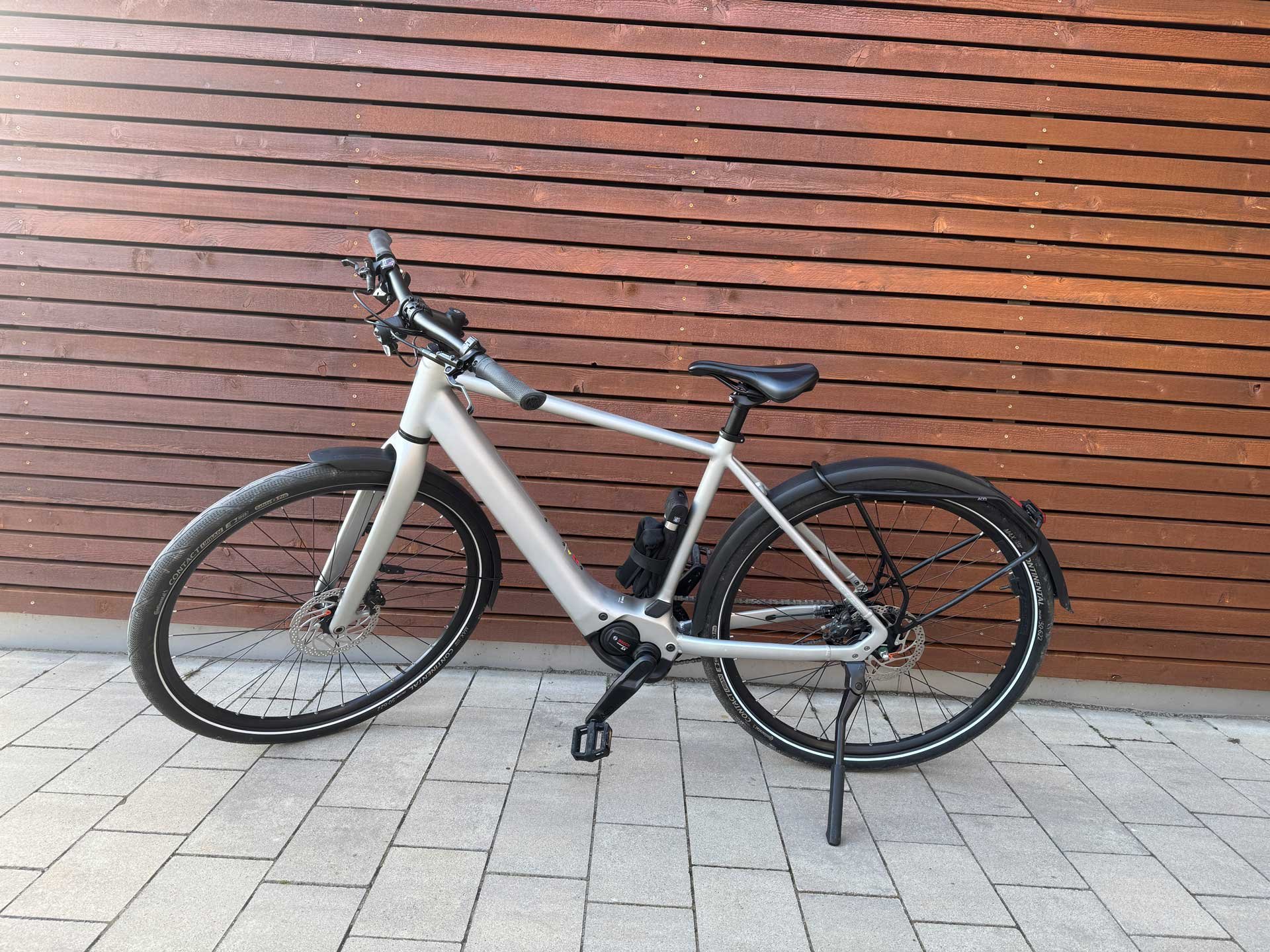 Das und die Bereifung mit wenig Rollwiderstand wirken sich positiv aufs Fahrgefühl aus: Agil, wendig und sportlich kommen Radler im Stadtverkehr voran – selbst ohne zugeschalteten Antrieb oder wenn der Akku mal leer ist. Abseits von geteerten Wegen und Straßen wird es auf unebenem Untergrund oder Kopfsteinpflaster mangels Federung jedoch schnell holprig. Geht es bergauf, hilft der Antrieb unauffällig und je nach Stufe dezent oder kräftig dazu. Der Akku ist elegant im Rahmen verbaut, die Leitungen laufen innen und geben dem Stadtgefährt eine cleane Optik.