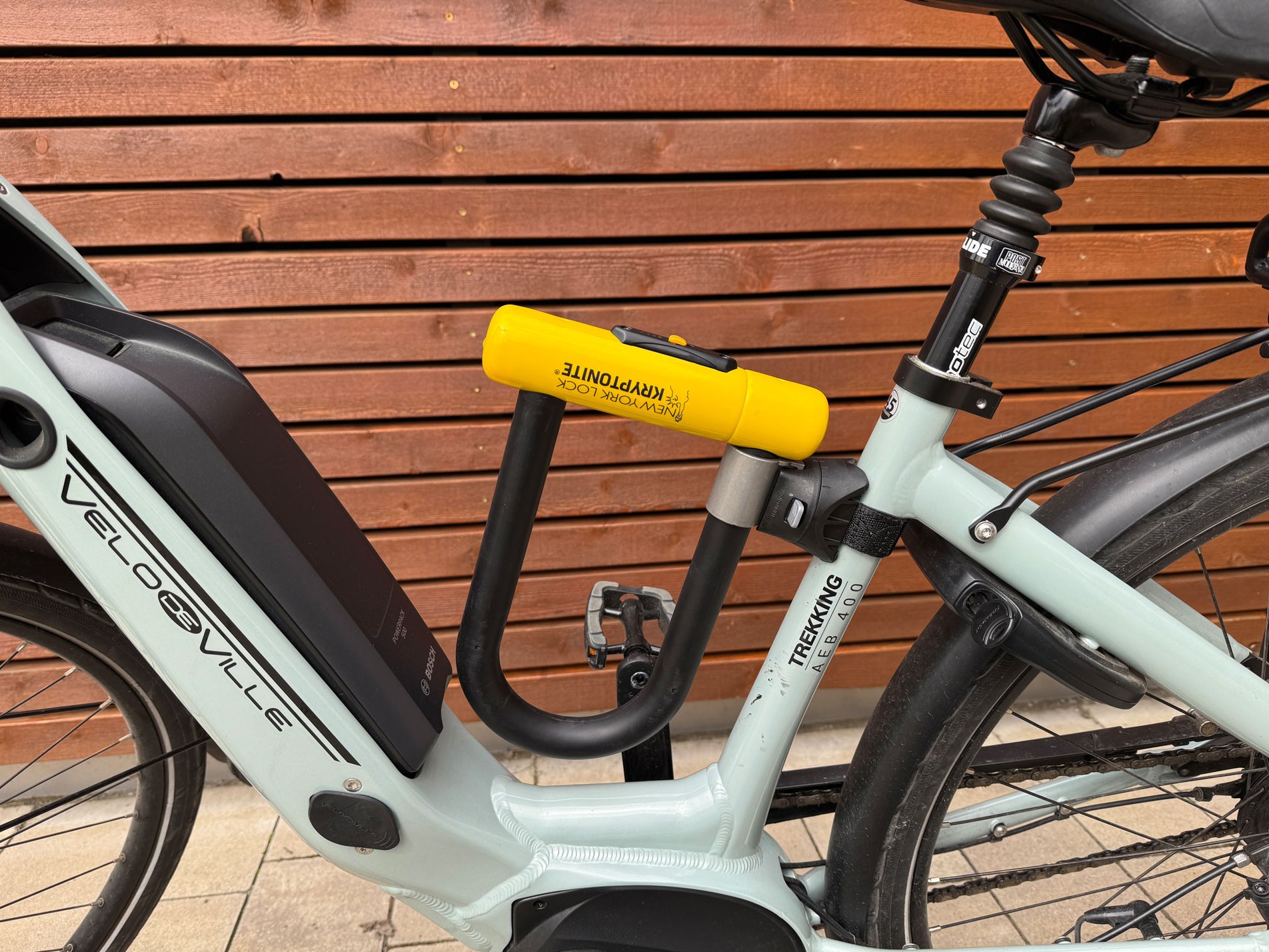 Um eines vorwegzunehmen: Sicherheit hat Gewicht und ihren Preis – zumindest beim Bügelschloss New York Lock Diamond Standard von Kryptonite. Das auffällige, gelb-schwarze Schloss wiegt 2,3 Kilogramm und ist damit vor allem für besonders teure E-Bikes wie beispielsweise Lastenräder geeignet, die sehr sicher vor Langfingern geschützt werden müssen und bei denen auch das Gewicht nicht so tragisch ist. Dafür ist die Neuentwicklung als Aushängeschild der Firma Kryptonite mit Sicherheitsstufe 10 von 10* besonders sicher. Die Ummantelung aus Diamant-Partikeln soll die von Dieben häufig genutzten Trennscheiben der Akkuflex aufreiben und so unschädlich machen.