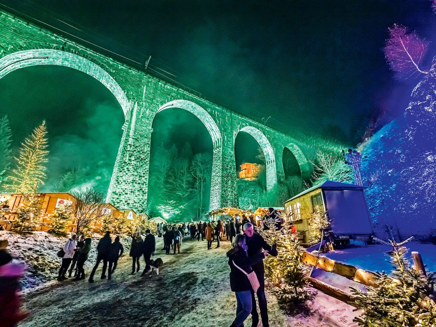Zwischen dem Eisenbahn-Viadukt der Höllentalbahn, dem Galgenbühl beim Hofgut Sternen und den steilen Hügeln der Ravennaschlucht entsteht jährlich (2024: an den Wochenenden vom 22. November bis 15. Dezember) ein Weihnachtswunderland. Die mystischen Wälder ringsum, die originellen Holzhütten und die verführerischen Schwarzwald-Spezialitäten sorgen für das besondere Flair. Die ortsansässige Schneeschuhakademie bietet Wanderungen zu dem als nachhaltige Veranstaltung ausgezeichneten Weihnachtsmarkt an. Im Eintritt ab 5,50 Euro ist der Bus-Shuttle inklusive.