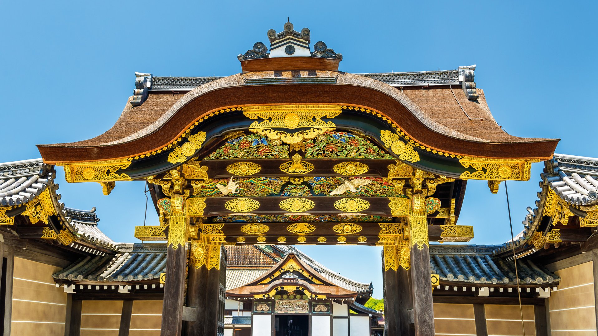 Wir fahren mit der U-Bahn zum Schloss Nijo-jo. Die dortige Fürstenresidenz ist die einzige aus der Edo-Zeit erhaltene Shōgunen-Residenz des Landes. In die große Halle des Holzbaus lässt sich ein Blick werfen, hier dankte 1867 der letzte Shōgun ab, damit ging die Edo-Zeit zu Ende, die Meiji-Restauration setzte ein. Wer auf dem bekannten Nachtigallenparkett läuft, erzeugt Geräusche wie Vogelgezwitscher, weil die Hölzer unter dem Gewicht aneinander reiben. Einst sollte dieser Vorläufer des modernen Bewegungssensors vor Eindringlingen warnen.