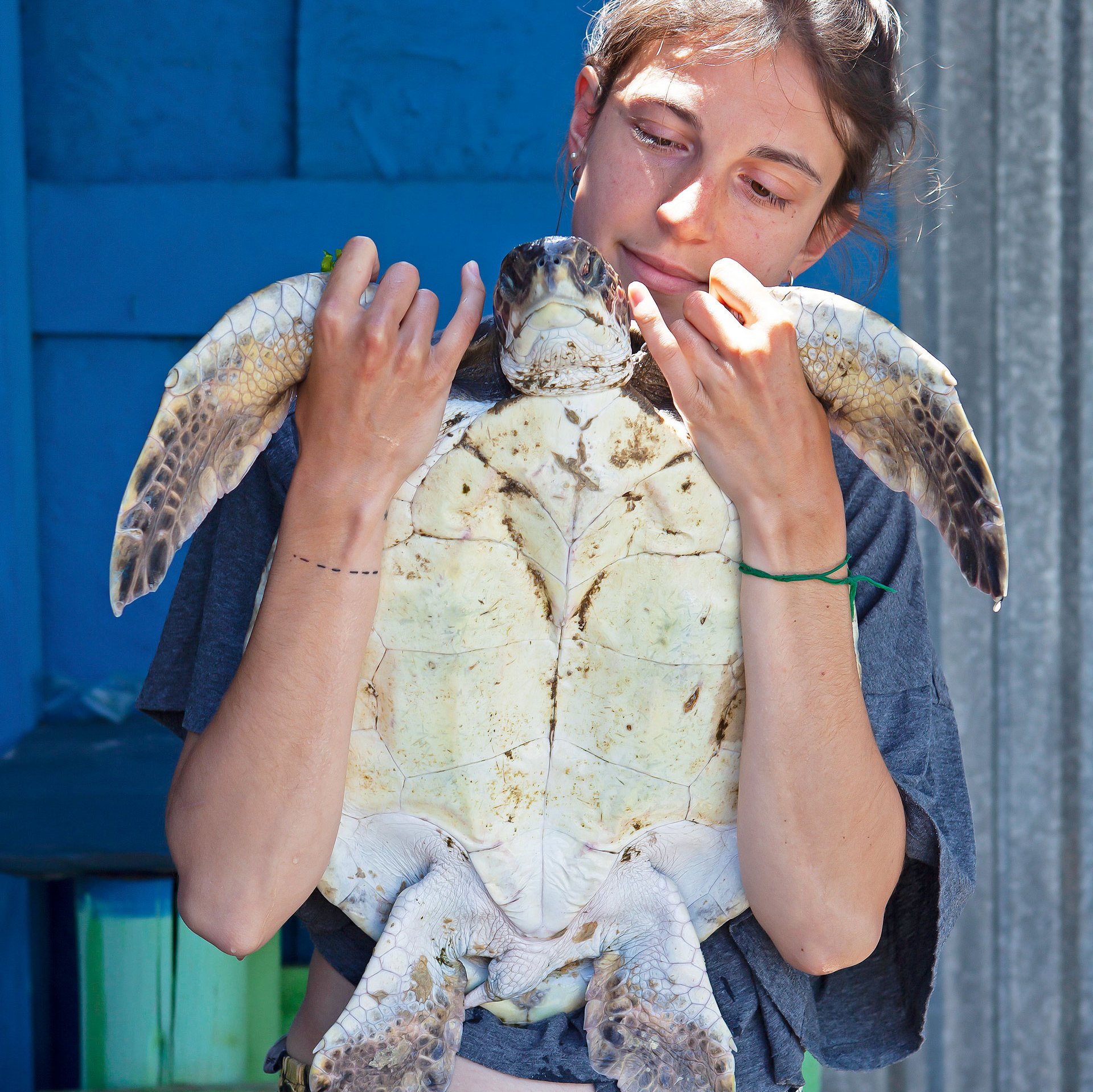 Nach La Coronilla hingegen kommen die Gäste, um Freiwilligenarbeit zu leisten. Hier hat sich die NGO Karumbé direkt am Strand niedergelassen. Sie widmet sich dem Schutz der Meeresschildkröten. Rund 100 Freiwillige aus aller Welt, die eine Woche und länger bleiben, zählt die unabhängige Organisation pro Saison. So wie die 26-jährige Estelle Chauffour. „Wir helfen Tieren, die unterkühlt sind, ein zu geringes Gewicht, beschädigte Panzer oder unterteilte Flossen haben“, erklärt die Französin. „Die schwierigen Fälle schicken wir per Bus nach Montevideo. Dort werden sie an der Veterinär-Fakultät der Universität kostenlos geröntgt“, fährt sie fort. In den letzten Jahren kamen durchschnittlich 14 Tiere pro Woche mit Problemen an den Strand. Eine Menge für die kleine NGO, in der sich Forscher, Naturschützer, Studenten und sogar Fischerfamilien organisieren. „150 Schildkröten sterben in Uruguay pro Jahr, weil sie ihre Nahrung mit Kunststoffen im Meer verwechseln. 600 Tiere verenden in Fischernetzen. Der illegale Verkauf von Schildpatt oder Schildkrötenfleisch kommt noch hinzu“, beschreibt Alejandro Fallabrino die Situation. Der Italiener hat Karumbé vor mehr als 20 Jahren gegründet und ist noch kein bisschen müde. „Meine Familie sind die Schildkröten“, sagt er und begutachtet ein Tier in einer Plastikwanne.