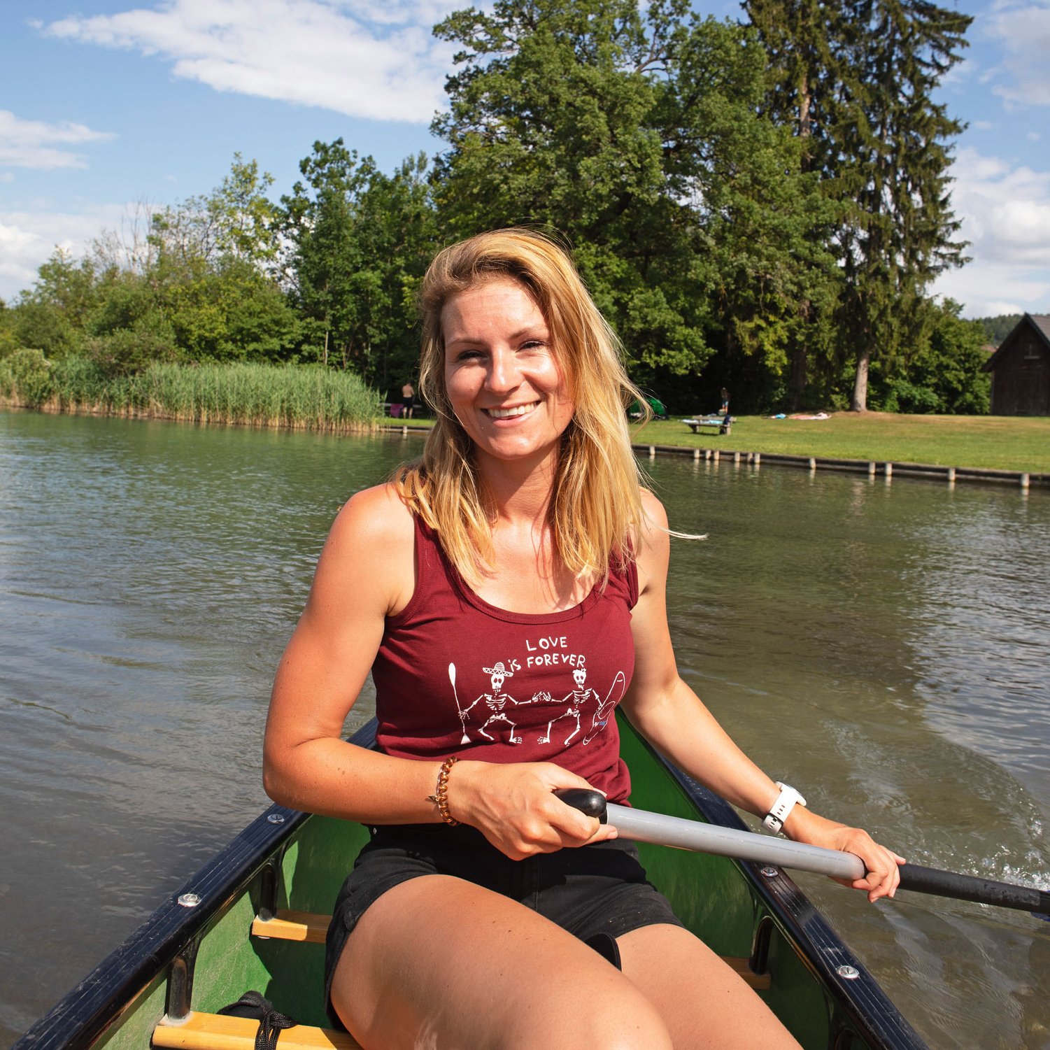 „Alle Bereiche, an denen Schilf wächst, sind hier geschützt. Das sind 80 Prozent des Ufers. Deshalb braucht man auch eine Genehmigung von den See-Eigentümerfamilien Catasta und Bucher, wenn man einen Steg am Ufer errichten will. Geld kostet das natürlich auch“, erklärt die 31-Jährige. Die Eigentümer halten die Wasserqualität gemeinsam mit dem Kärntner Seenforschungsinstitut hoch, erlauben keinen gewerblichen Fischfang und verbieten sämtliche Motorboote. Ausnahmen gelten für die Polizei, die Rettung und den Hotel-Shuttle zur Faaker-See-Insel, einer bewaldeten Binnenseeinsel mit angeschlossenem Badehaus. Zum Schwimmen und Stand-up-Paddeln aber kann den See jedermann nutzen. „Hier habe ich sofort ein Urlaubsgefühl. Im Sommer hat das Wasser 27 Grad, es gibt kein Salz, ich komme aus dem Wasser, bin sauber und muss nicht mehr duschen“, meint van der Duin und lacht.