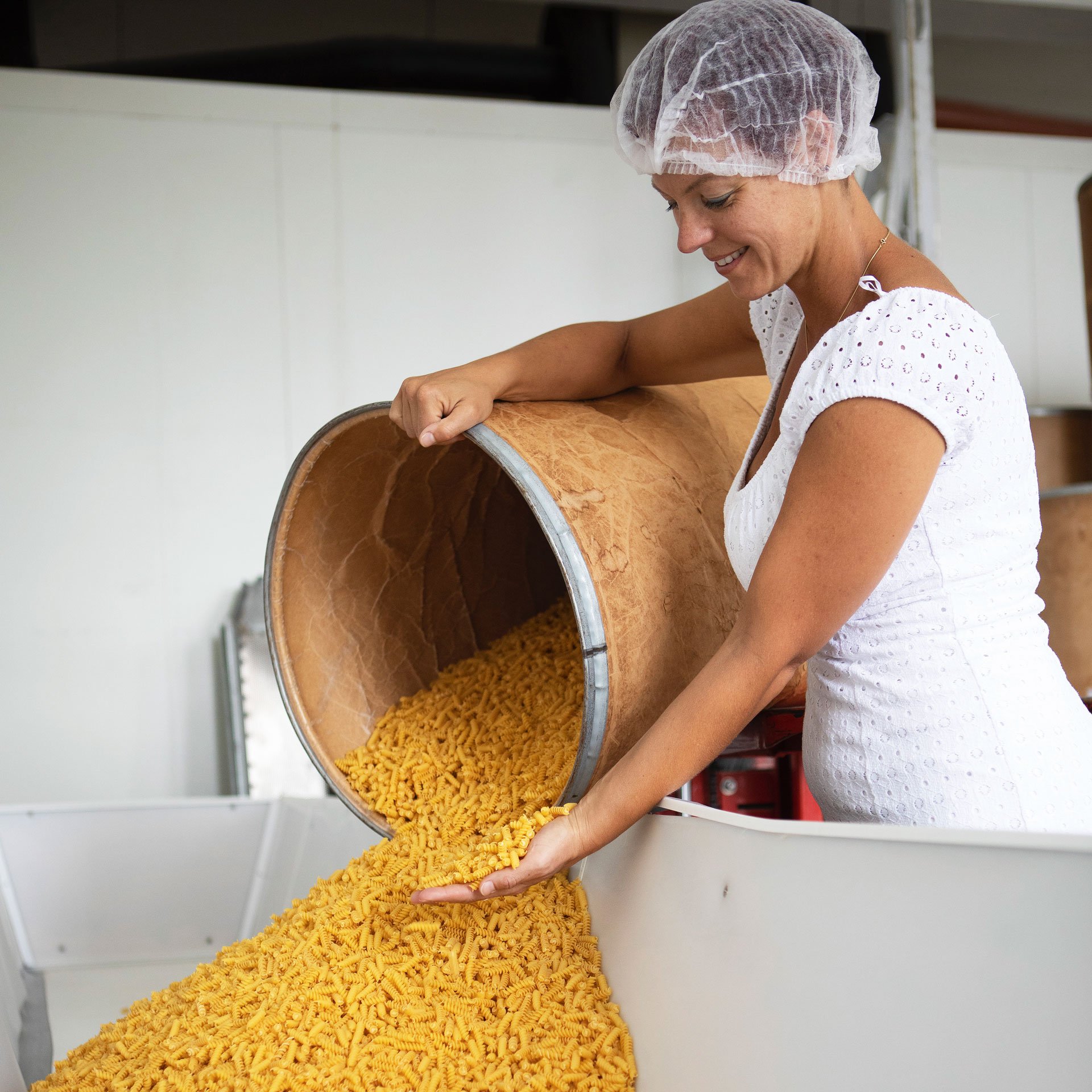In Finkenstein, nur drei Kilometer Luftlinie vom Faaker See, zeigt Katharina Gregori eine bronzene italienische Nudelform. „Wenn der Teig mit hohem Druck durch diese Öffnungen gedrückt wird, wird die Nudeloberfläche schön rau, so wie es sich gehört“, erklärt die 38-Jährige. Die Produktionschefin der Finkensteiner Nudelfabrik hat das Traditionsunternehmen zusammen mit ihrer Schwester, der Restaurantleiterin, von den Eltern übernommen. „Weil wir zu faul waren, uns etwas anderes zu suchen. Ich habe mit Papa schon die Maschinen repariert und von ihm auch das Nudelmachen gelernt“, erzählt Gregori. „Wir produzieren Kühe, Campingbusse, Blumen oder Firmenlogos, alles in Nudelform“, fährt sie fort. 90 Sorten, 350.000 Kilogramm im Jahr mit zehn Mitarbeitern.