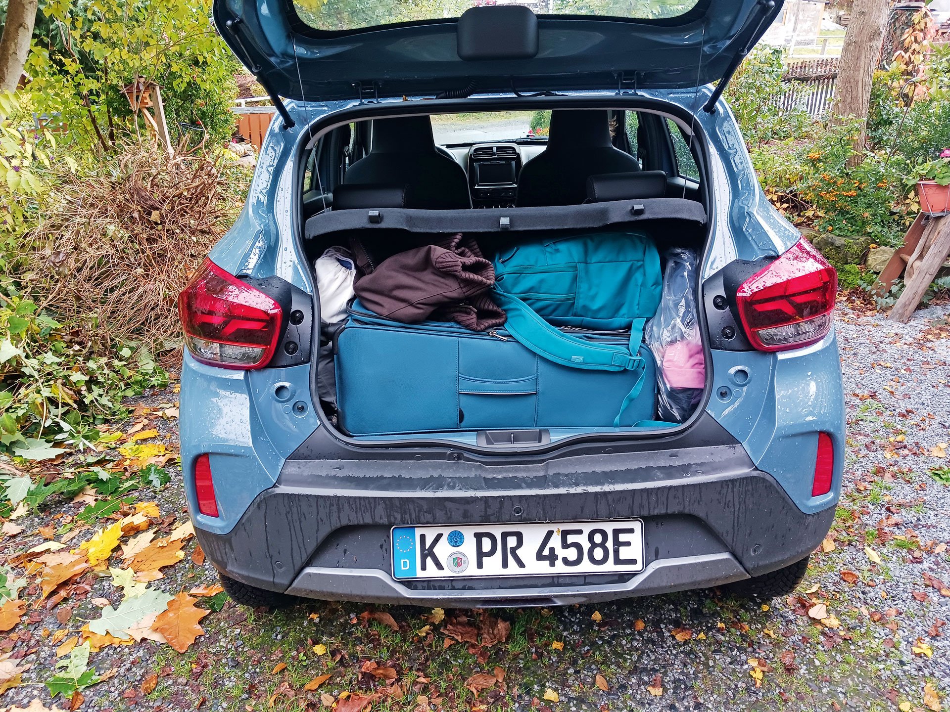 Es gibt wenig Ablageflächen und keine Armlehne im Dacia Spring. Andererseits können auch größere Menschen vorne recht bequem sitzen, hier zahlt sich das SUV-Format aus. Enger geht es im Fond zu, hier gibt es nur zwei und nicht drei Sitzplätze. Das Gepäckabteil ist begrenzt: Einen großen Rollkoffer konnten wir verstauen, dann war das Ladevolumen praktisch ausgeschöpft. Schon klar, der Spring ist keine Reiselimousine. Doch er kann weit mehr als nur Stadtverkehr. Pendler fahren im Durchschnitt kaum 20 Kilometer zur Arbeit. Ihnen genügt die Reichweite des Dacia auch über Land locker. Dazu kommen sehr günstige Unterhaltskosten, gerade wenn man an der heimischen Wallbox Strom aus der eigenen Solaranlage nutzt.