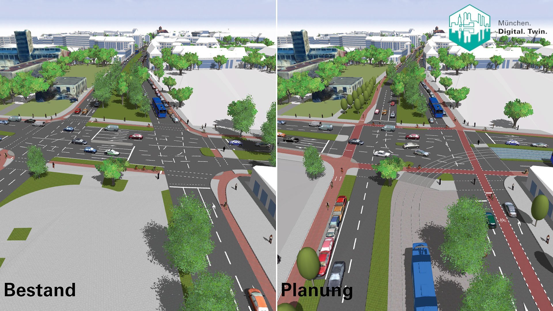 Die Stadt München nutzt für ihre Planungen bereits seit mehreren Jahren ein Instrument, das der Geodatenservice – früher hieß es Vermessungsamt – entwickelt hat: den digitalen Zwilling. Aus vorhandenen Stadtkarten, Plänen, Luftbildern, 3D-Stadtmodellen und Kataster-Daten ist ein digitales Abbild der bayerischen Landeshauptstadt entstanden. Dieses ermöglicht, Planungen realitätsgetreu darzustellen. Das macht es für die Stadtverwaltung unter anderem in der Öffentlichkeitsbeteiligung einfacher. „Wenn wir eine Straße umbauen möchten, zeigen wir nicht mehr eine Querschnittsansicht, die für die Bürgerinnen und Bürger nicht wirklich verständlich ist, sondern visualisieren mit 3D“, erklärt Markus Mohl vom Geodatenservice der Stadt München. Häufig werden Planungen auch als Video online gestellt, damit man sie besser nachvollziehen kann. „Das Entscheidende dabei ist, dass das städtische, amtliche Daten sind, nicht irgendeine Visualisierung von einer Agentur. Das ist alles gemessen.“ Die Grundrisse der Gebäude stammen aus dem Kataster, selbst die Bäume sind aufgenommen. Bei Veranstaltungen mit Bürgern fördere das eine positive Gesprächsatmosphäre, „weil wir ihnen nichts vorgaukeln. Wir lassen keine Schmetterlinge oder Vögel durch die Szene fliegen, damit es möglichst toll aussieht. Wir zeigen das genauso mit den Daten, die wir als Stadtverwaltung haben“, erklärt Mohl. Das sei ein großer Vorteil, durch den die Teilnehmenden sich mitgenommen fühlen würden.