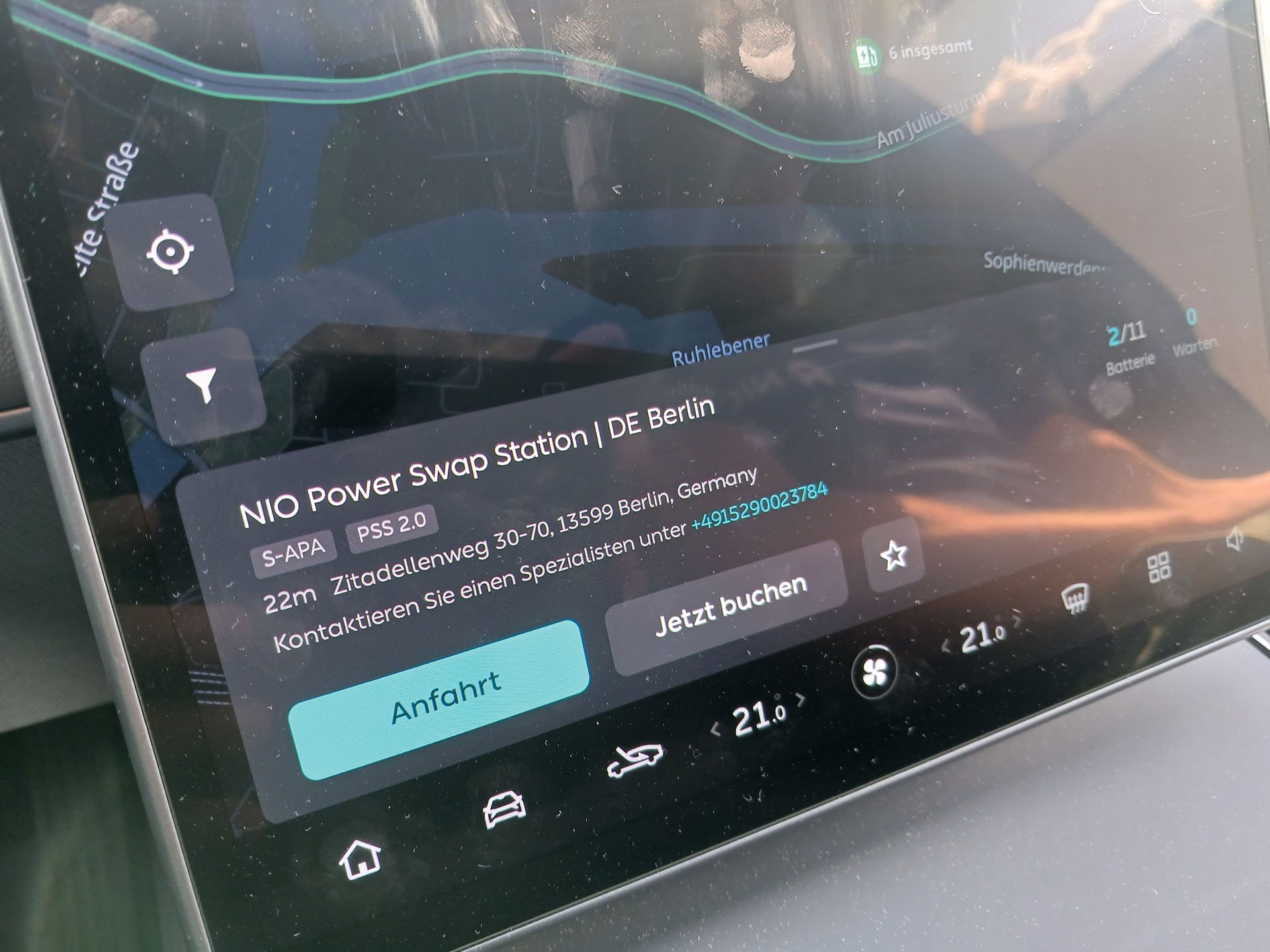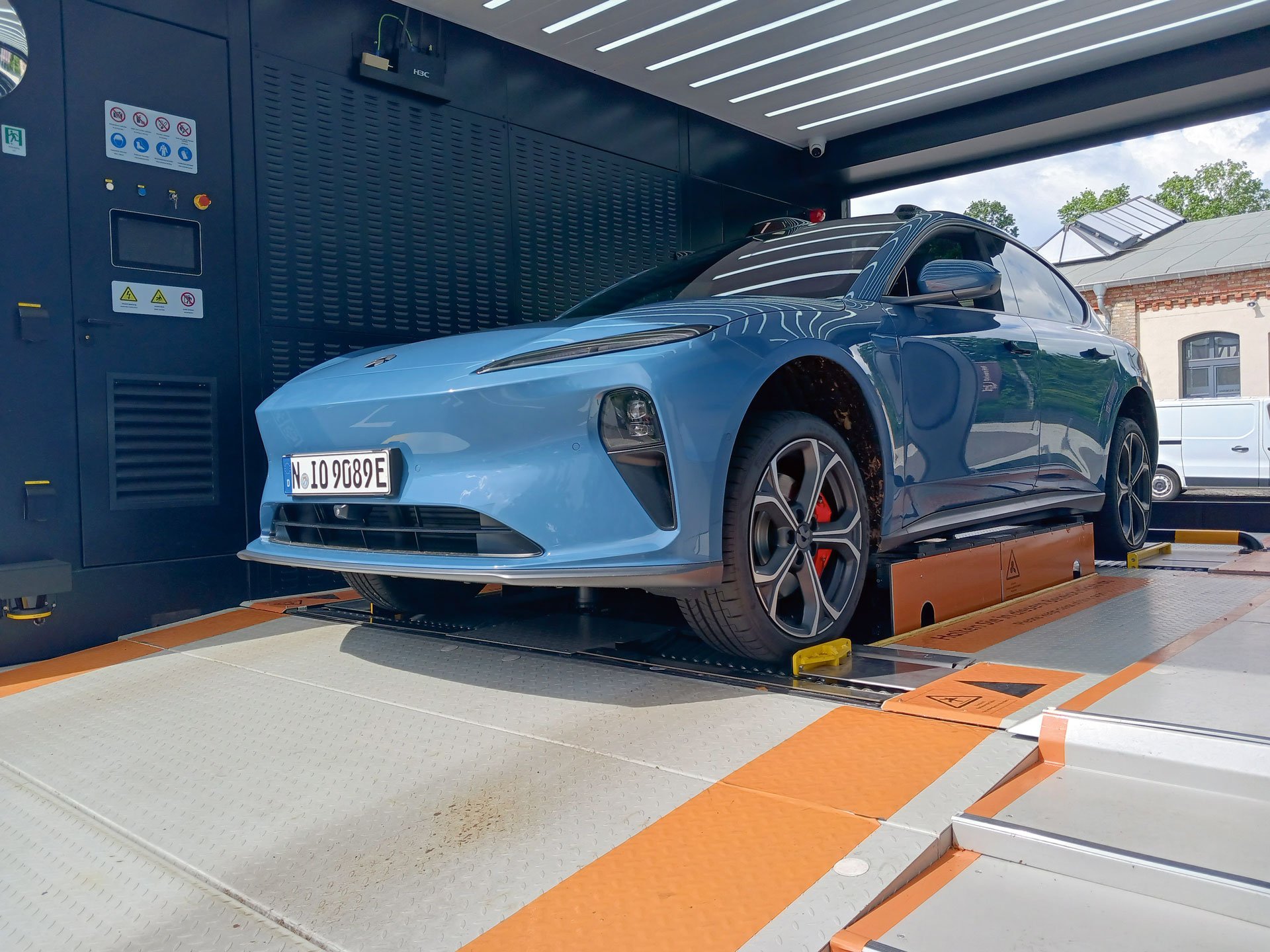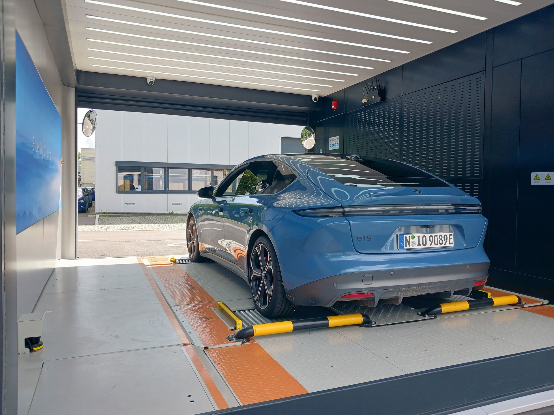 Wie der Akkuwechsel genau funktioniert, testeten wir mit einem Nio ET5 in Berlin-Spandau. In einem Gewerbepark hat der Hersteller eine neue Swap-Station eingerichtet. Die Technik verblüfft: Am Standort angekommen, fährt das Fahrzeug autonom und wie von Geisterhand gesteuert rückwärts in eine Art Garage. Es ruckelt, vom Unterboden dringen Schraubgeräusche ins Cockpit. „Jetzt wird die leere Batterie entnommen. Und von der anderen Seite kommt aus dem Ladekabinett eine frisch aufgeladene Batterie und wird im Fahrzeug installiert“, erklärt der anwesende Mechatroniker den vollautomatischen Prozess. Kurz darauf ist der rund 500 Kilogramm schwere Akku gewechselt. Wie bei einer Waschanlage schaltet eine Ampel auf Grün und wir können weiterfahren.