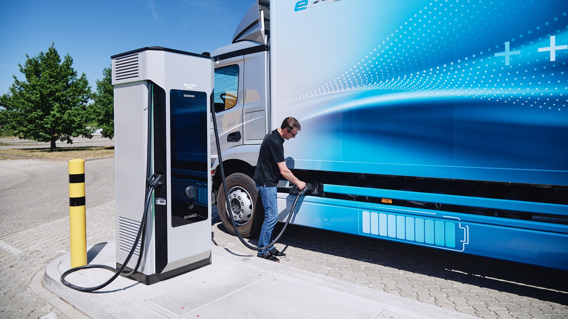 Groß könnte das Potenzial auch bei Nutzfahrzeugen sein. In Polen betreibt Inframobility-Dianba eine weitere Akkuswap-Pilotanlage für E-Busse und -Lkw. Für alltagstaugliche Reichweiten im Schwerlastverkehr brauchen Elektro-Trucks gewaltige Batterien. Doch auch hier tut sich einiges. Der Mercedes eActros, der bald in Serie gehen und eine Reichweite von bis zu 400 Kilometern schaffen soll, kann an gängigen DC-Ladesäulen aufladen. „Auch soll der Ladehub von 20 auf 80 Prozent beim eActros nur eine Stunde dauern“, sagt Dirk Wollschläger vom CAR. Regelmäßige Ruhepausen müssen Brummifahrer ohnehin einlegen
