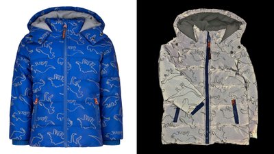 Die blaue Kinderjacke mit Dino reflektiert vollständig. Wind- und wasserabweisend sowie atmungsaktiv schützt sie zuverlässig. Ideal für Kinder, die bei schlechtem Licht sichtbar und warm unterwegs sein sollen und keine Lust auf Warnwesten haben. Auch für Mädchen mit Sternenmotiv erhältlich.