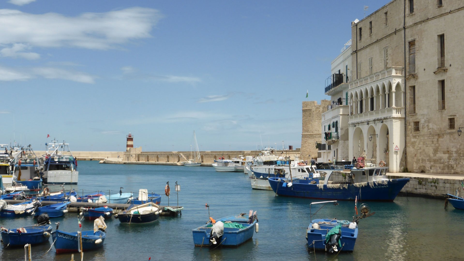 In Apulien spürt man am stärksten die Nähe des Orients. Hier verläuft fast sichtbar die Grenze zwischen Abend- und Morgenland“, notierte der Journalist und Schriftsteller Guido Piovene, der in den 1950er-Jahren in seiner gleichnamigen Radioserie die Hörer mit auf eine „Reise durch Italien“ nahm. Zwischen Orient und Okzident liegt das Meer als historisch bedeutendster Verkehrsweg. Die beiden großen Hafenstädte Bari und Brindisi spielen daher seit jeher eine wichtige Rolle für die im Laufe der Geschichte immer wieder umkämpfte Region. Griechen, Römer, Araber, Normannen und Staufer hinterließen hier ihre Spuren. Heute sind die Zeiten friedlicher in Puglia, wie Apulien auf Italienisch genannt wird. Um die Seestädte werden keine Schlachten mehr ausgefochten. Aber Schiffe legen hier noch immer ab, etwa die Fähren nach Griechenland.