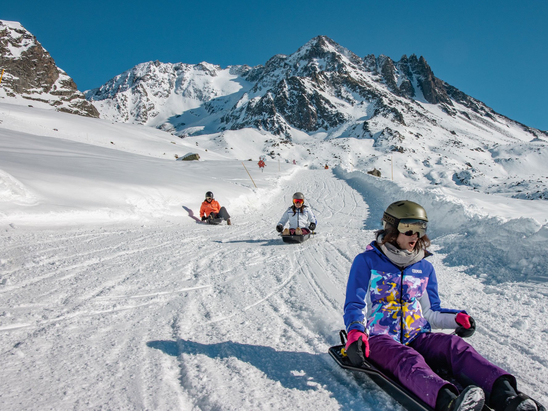 Wer einmal erleben möchte, wie die längste Rodelbahn Frankreichs vorbereitet und gepflegt wird, ist in Val Thorens, dem höchstgelegenen Skiort Europas im Skigebiet Les 3 Vallées in Frankreich richtig. Auf 3.000 Metern Höhe liegt der Start der Rodelbahn Cosmojet, die auf sechs Kilometern am Fuße des Gletschers Péclet über Kurven und Hänge hinabführt. Immer dienstags zeigt ein Teammitglied Gruppen mit maximal acht Personen, was nötig ist, um den Rodlern optimale Bedingungen zu bieten. Eine Anmeldung ist am Tag vorher im Chalet du Cosmojet erforderlich. Wer die Bahn ausprobieren möchte, zahlt 17,30 Euro für die Auffahrt mit der Gondel Funitel Péclet, den Schlitten und Helm.