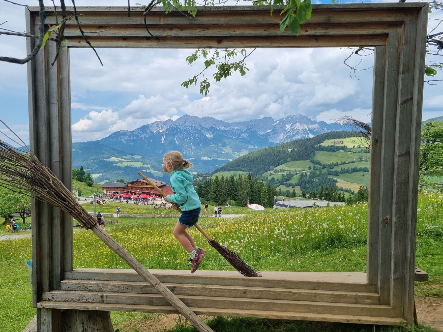 Staunen, begreifen und verstehen – darum geht es in der Erlebniswelt Hexenwasser auf 1150 Metern in Hochsöll, an der Mittelstation der Hohen Salve. Spielerisch erkunden Kinder und Erwachsene mit allen Sinnen an zahlreichen Entdecker-Stationen die Natur und deren Wunder und wandern von Alm zu Alm, von Spielstation zu Spielstation. Dabei begegnen sie immer wieder „echten“ Hexen, die sie in die Geheimnisse der Natur einweihen und Wissen lebendig vermitteln – so entstehen wahrhaft magische Momente, die noch lange in Erinnerung bleiben. Die kleinen Besucher dürfen vieles ausprobieren und selbst zu kleinen Hexen werden. Auch der Wasserspaß an heißen Sommertagen kommt hier nicht zu kurz (Wechselkleidung mitnehmen). Unser Highlight: das Blaue Wunder, wo man das Element Wasser von vielen besonderen Seiten kennenlernen kann. Unbedingt viel Zeit mitbringen – das Angebot ist riesig.