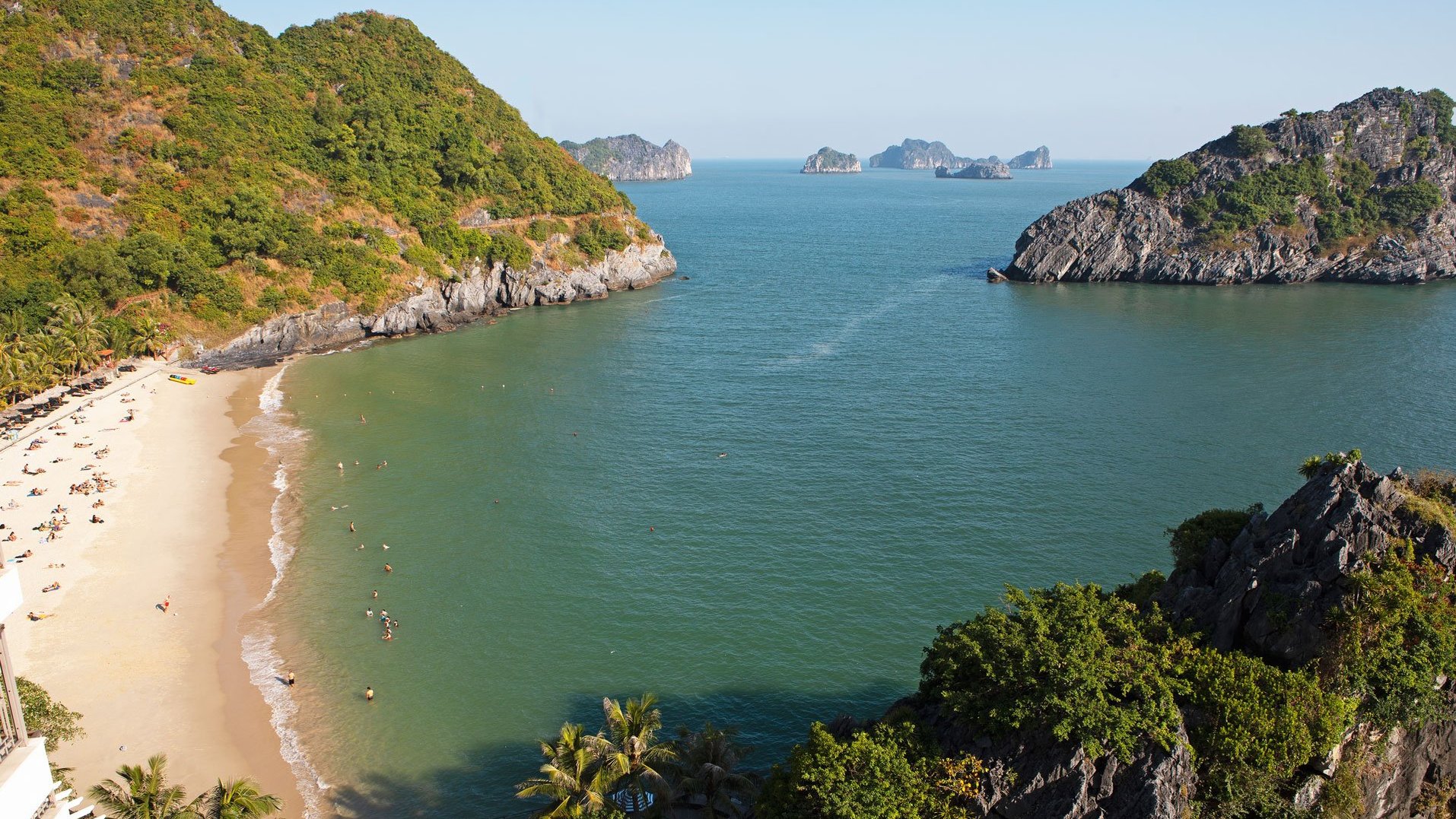 Sie startet in Cát-Bà-Stadt, an deren einstiger Küstenstraße sich die Traveller, die aus aller Herren Länder angereist sind, in den Restaurants, Cafés und Hotels treffen. Zwar plant die Regierung derzeit aus Cát-Bà-Island die erste CO2-freie Tourismusinsel Vietnams zu machen und Cát-Bà-Stadt soll den Vorgeschmack liefern. Dafür hat man die vorgelagerte Bucht mit Sand aufgeschüttet, will darauf Grünanlagen, Fußgängerzonen, öffentliche Einrichtungen und einen hochmodernen Strand etablieren. Doch bis im Jahr 2026 die Arbeiten beendet sein sollen, dauert es noch eine Weile.