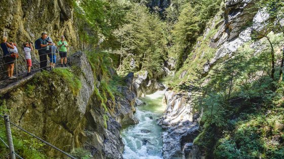 In den Bergen bieten sich gerade bei heißen Temperaturen Wanderwege durch eine Klamm an. Kühler Fels, spritzendes tosendes Wasser – da schwitzt man doch gleich viel weniger. Optionen wären zum Beispiel die Höllentalklamm in Grainau oder die Partnachklamm in Garmisch-Partenkirchen. Wer lieber nicht so lange laufen möchte: Solche Wanderwege durch eine Klamm sind auch in kleinerer Ausführung zu finden wie durch die Kaiserklamm im Alpbachtal (Foto).