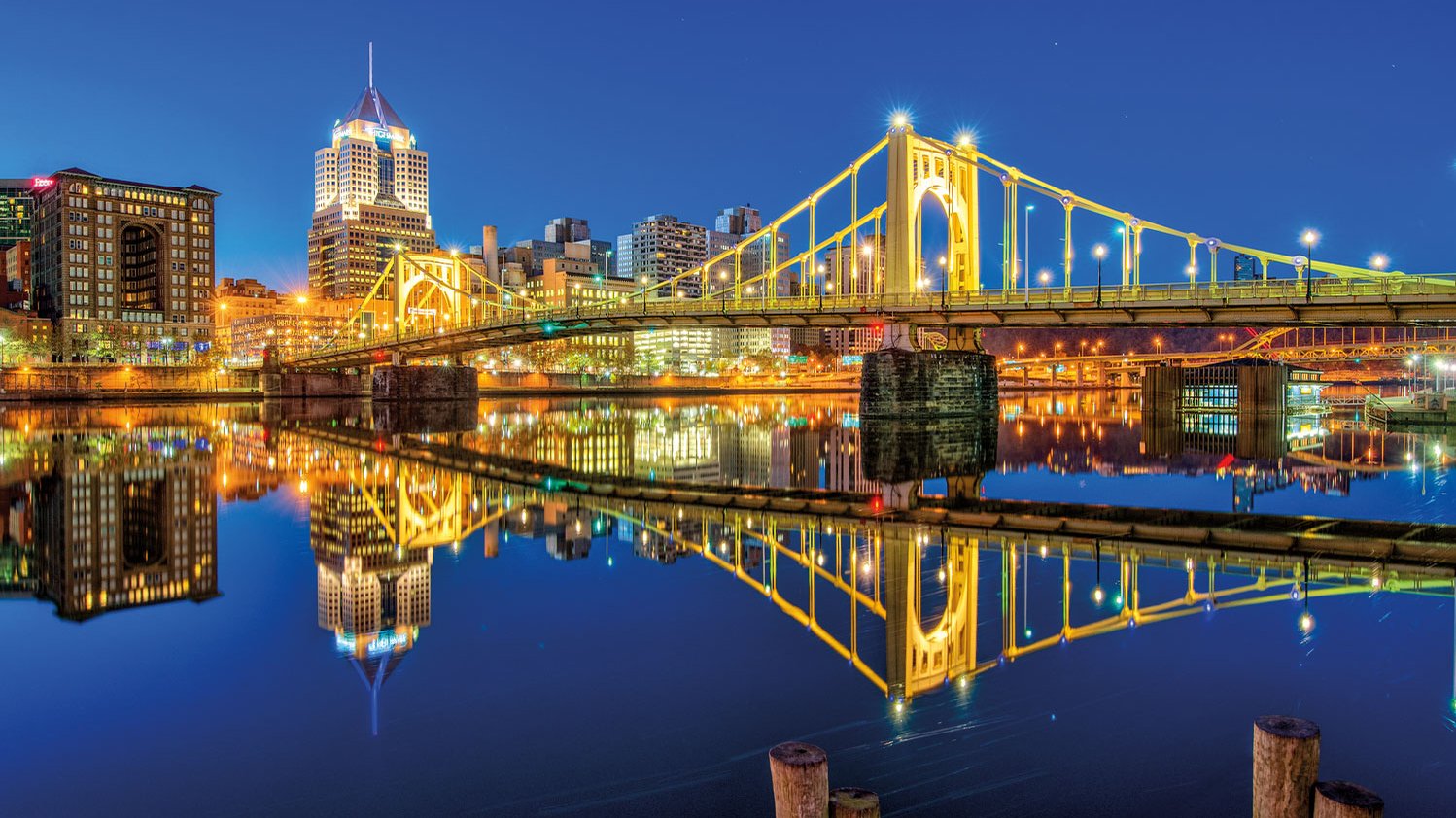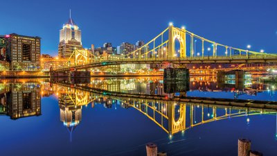 Einzigartig in den USA sind die Sister Bridges in Pittsburgh – drei fast identische Hängebrücken aus Stahl, die den Allegheny River zwischen Downtown und dem Künstlerviertel North Shore überspannen. Entstanden in den 1920er-Jahren waren sie die ersten selbstverankerten Hängebrücken des Landes. Jede wurde zu Ehren eines berühmten Pittsburghers benannt, nämlich nach Baseballikone Roberto Clemente, Pop-Art-Künstler Andy Warhol und der engagierten Meeresbiologin Rachel Carson. Architekturfans begeistern sich für die aufwendige Konstruktion mit Stahlösen-Ketten, die sich heute fast nirgendwo mehr findet. Doch damit nicht genug: Mit insgesamt 446 Brücken darf sich Pittsburgh wahrlich City of Bridges nennen.