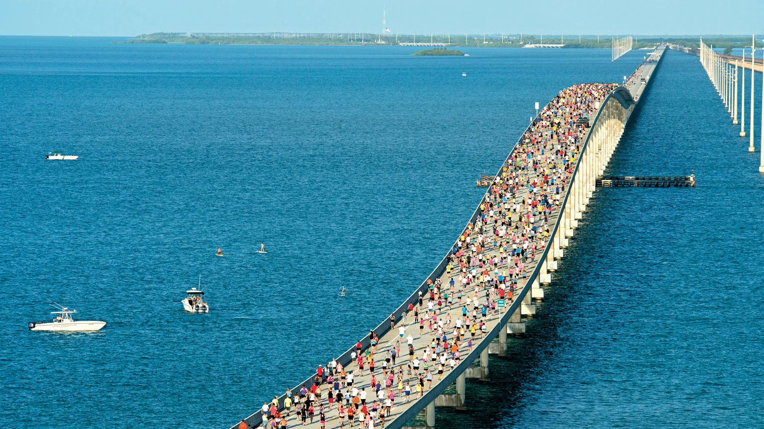 Die Florida Keys sind vor allem bekannt für die 42 Brücken des Overseas Highway, welche die Inselkette mit dem Festland verbinden. Die berühmteste und längste von ihnen ist die Seven Mile Bridge, die von Marathon Knight’s Key nach Little Duck Key führt. Die Seven Mile Bridge verläuft parallel zu einer alten Brücke, die von einem Hurricane teilweise zerstört wurde und nun für Radfahrer und Fußgänger zugänglich ist. Jedes Jahr im April findet der Seven Mile Bridge Run statt. Der Lauf ist einer der beliebtesten der Vereinigten Staaten und immer innerhalb von wenigen Minuten ausgebucht.