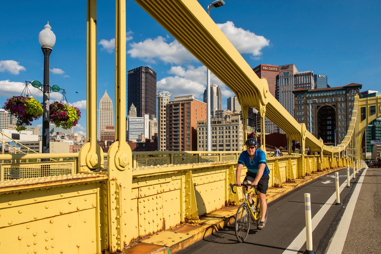 Mobilitätswende in den autoverrückten USA? Ja, vor allem Großstädte setzen zunehmend auf alternative Verkehrsmittel. So auch Pittsburgh im Bundesstaat Pennsylvania, wo 2021 ein ambitionierter Plan ausgerufen wurde. Binnen zehn Jahren sollen insgesamt knapp 200 Kilometer an eigenständigen, abgetrennten Fahrradwegen und nochmals 43 Kilometer Fahrradspuren auf den Straßen neu geschaffen werden. Schon jetzt sind die knapp 40 Kilometer Radwege allein entlang der Flüsse bei Besuchern und Pendlern beliebt. Ein Vorbild ist sich Pittsburgh selbst: Der letzte 10-Jahres-Bike-Plan von 1999 weitete die Fahrradinfrastruktur von anfänglich nur 17 auf 150 Kilometer Wegenetz aus.