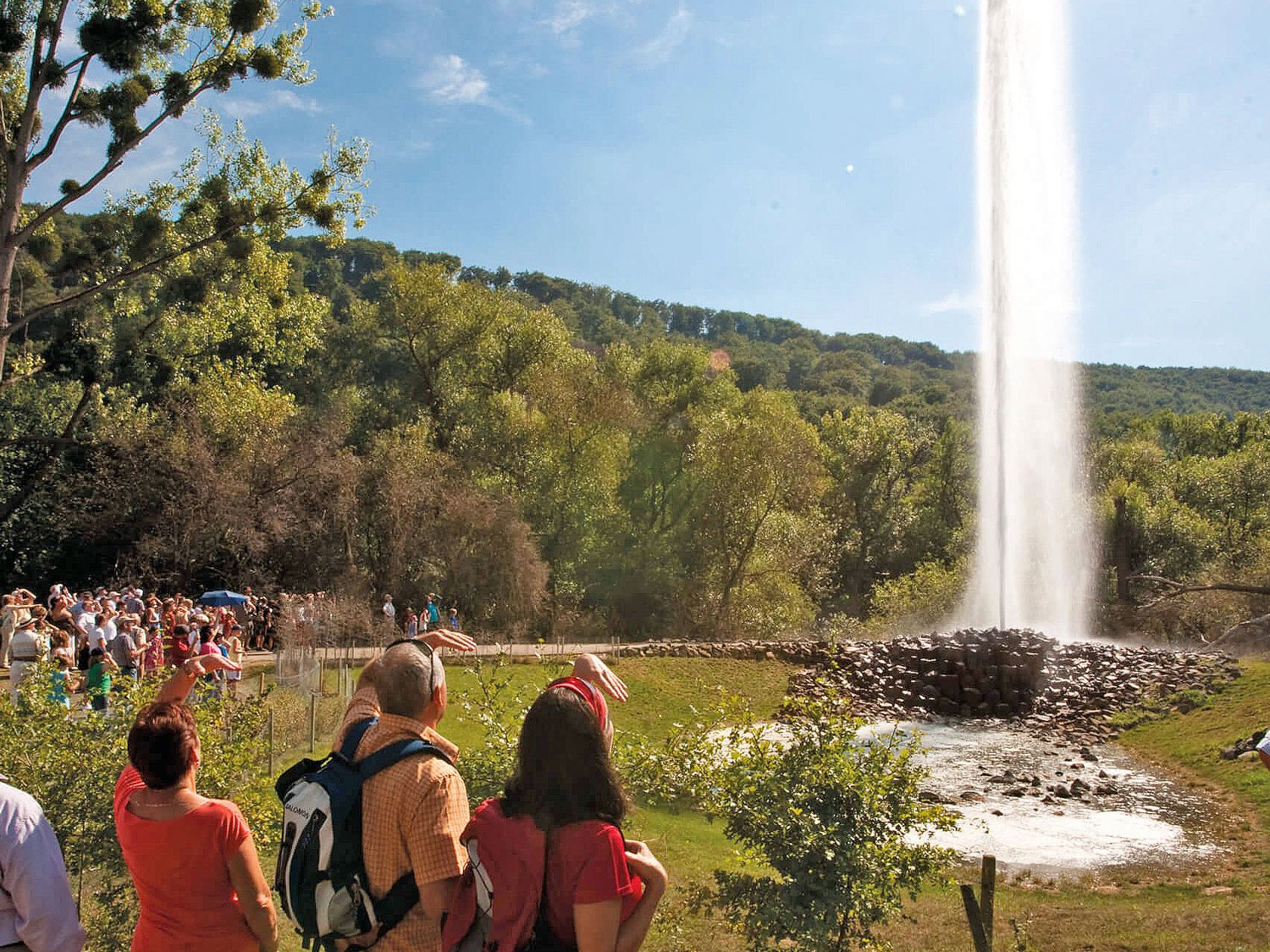 Hätten Sie’s gewusst? Der höchste Kaltwassergeysir der Welt liegt auf einer Halbinsel im Rhein in der Nähe von Koblenz. Alle 110 bis 120 Minuten bricht der Andernacher Geysir für etwa 15 Minuten aus und stößt Fontänen von 50 bis 60 Meter Höhe in die Luft. Sein Antrieb ist natürliches Kohlenstoffdioxid wie in einer geschüttelten Mineralwasserflasche. Mehr über die geologischen Hintergründe erfahren Besucher im Erlebniszentrum Geysir Andernach in der Nähe des Rheinufers etwa zwei Kilometer südöstlich des Geysirs. Von dort besteht eine Schiffsverbindung zur Halbinsel.